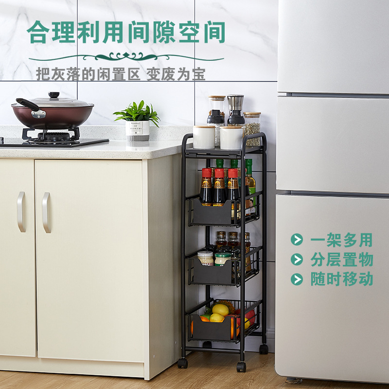 夹缝抽屉式可抽拉可移动推车厨房冰箱缝隙置物架卫生间窄缝收纳