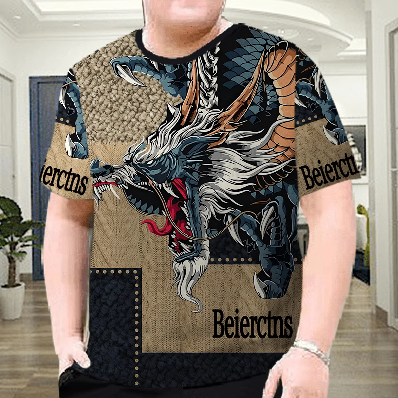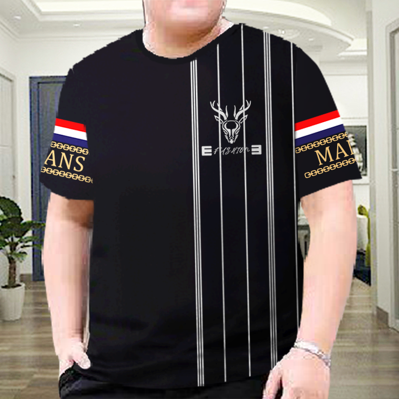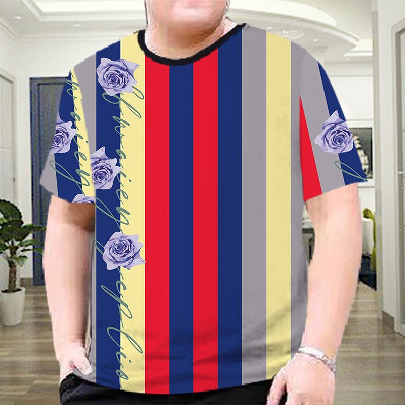 夏季男装冰丝透气宽松大码男士短袖t恤潮流花半袖潮牌印花圆领