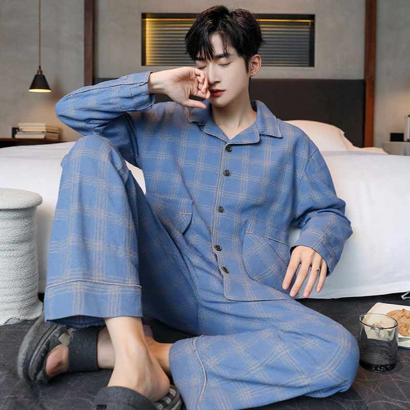 浪莎纯棉睡衣男春秋季长袖长裤大码青少年韩式家居服可外穿两件套