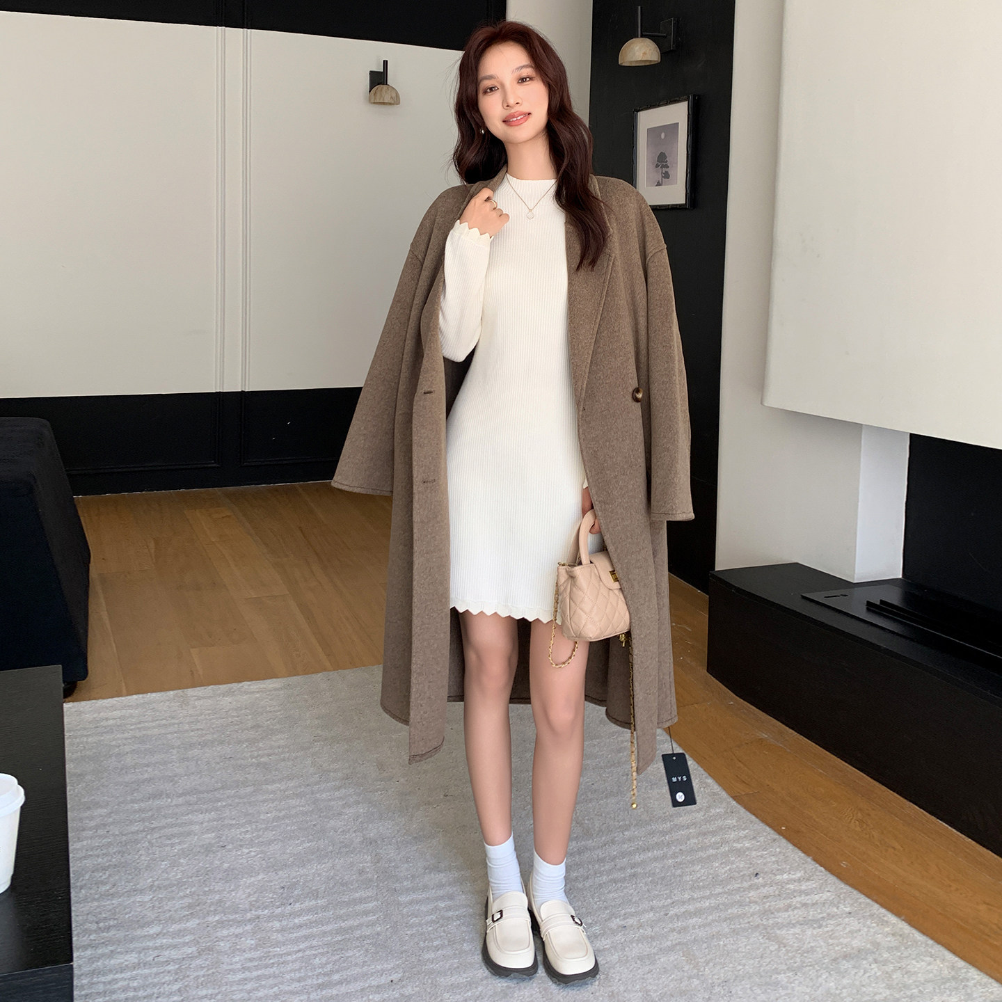 白色打底中长款毛衣裙女秋冬内搭针织连衣裙修身显瘦小个子a字裙