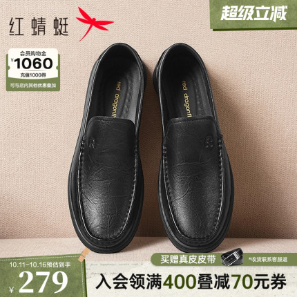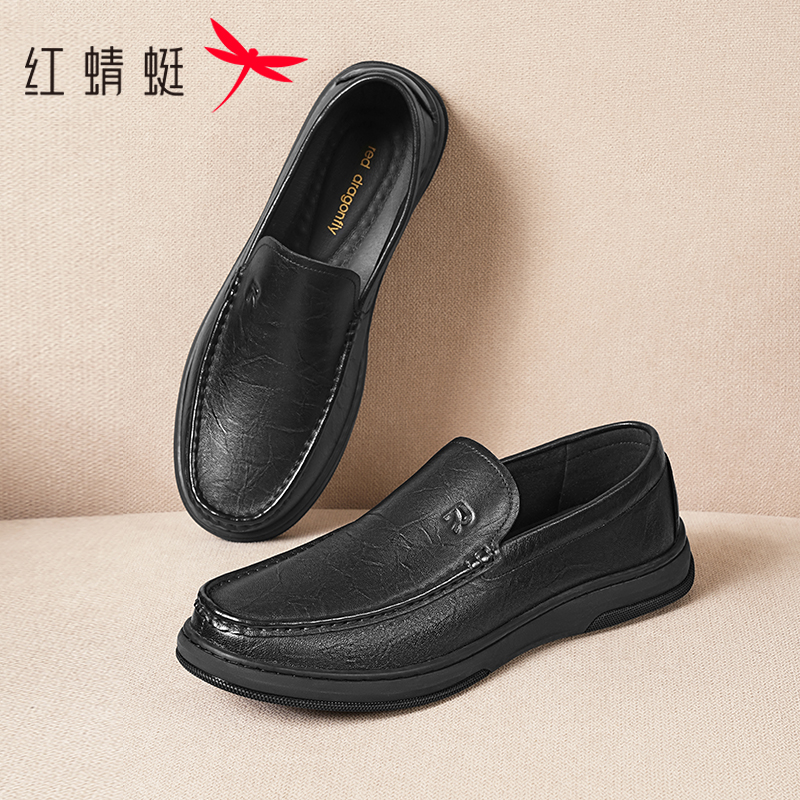 红蜻蜓男士皮鞋2025秋新款一脚蹬男鞋高端羊皮乐福鞋中老年爸爸鞋
