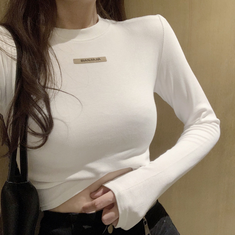 2025秋冬季内搭洋气长袖紧身短款上衣设计感小众高腰打底衫T恤女