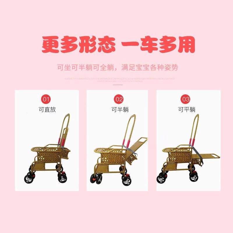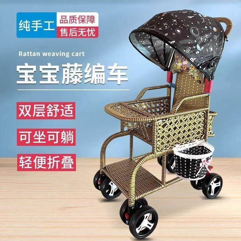 藤编婴儿推车仿藤编轻便藤椅折叠可坐可躺仿竹藤编加高护栏手推车