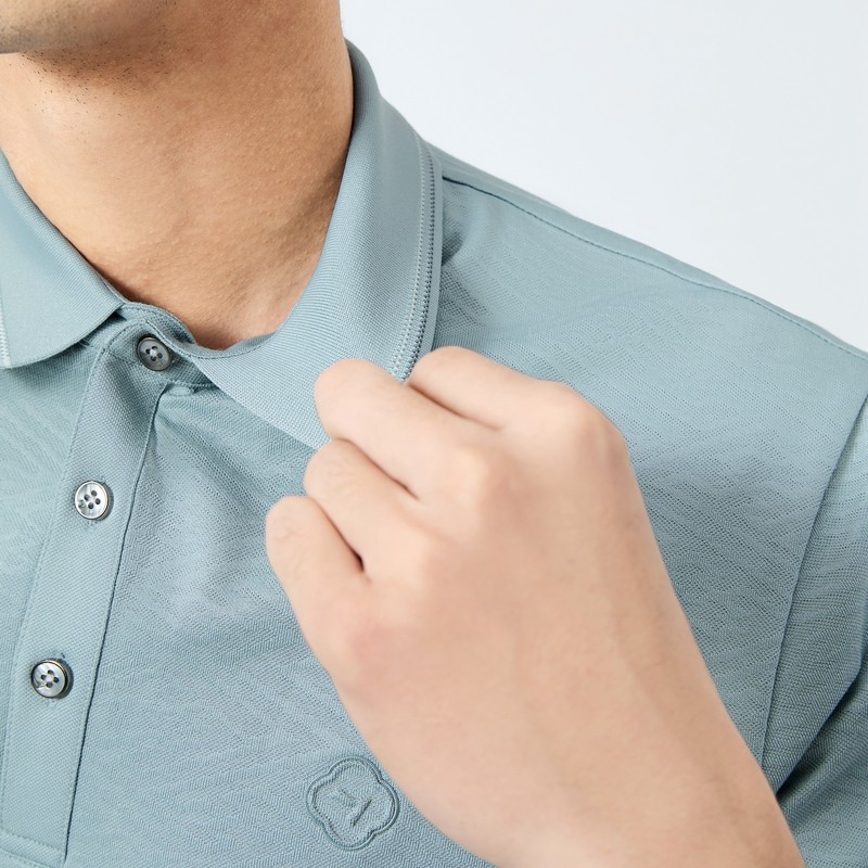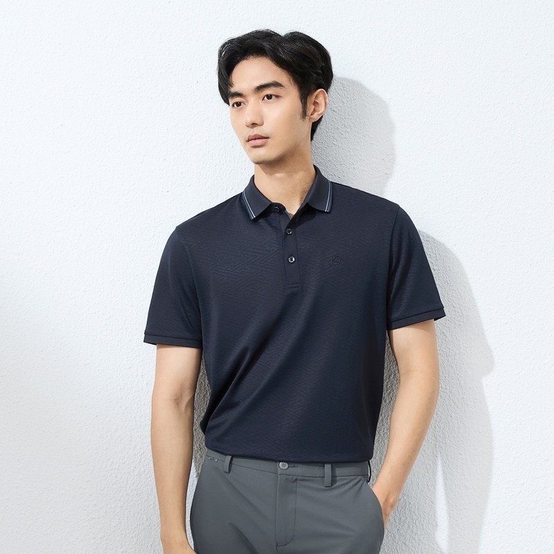 【含桑蚕丝】柒牌男士短袖Polo衫夏季新款提花肌理亚麻提花休闲T
