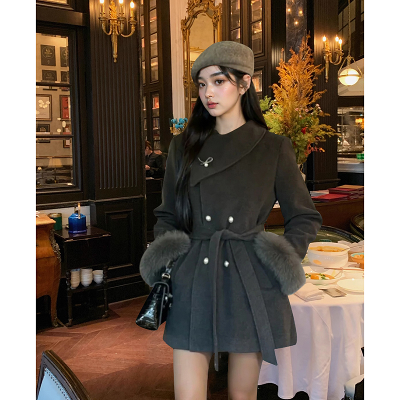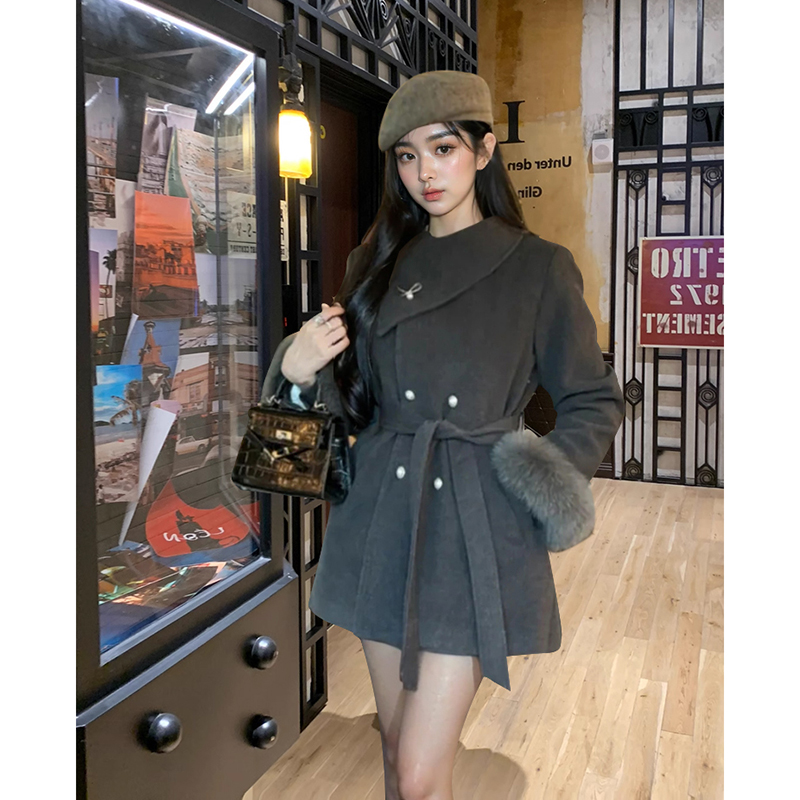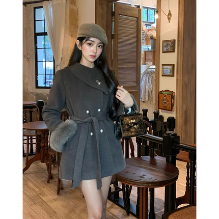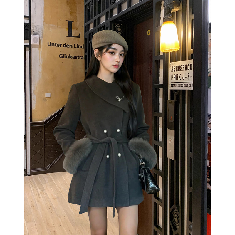 气质名媛风富家千金小香风毛呢外套女冬季2024新款中长款呢子大衣