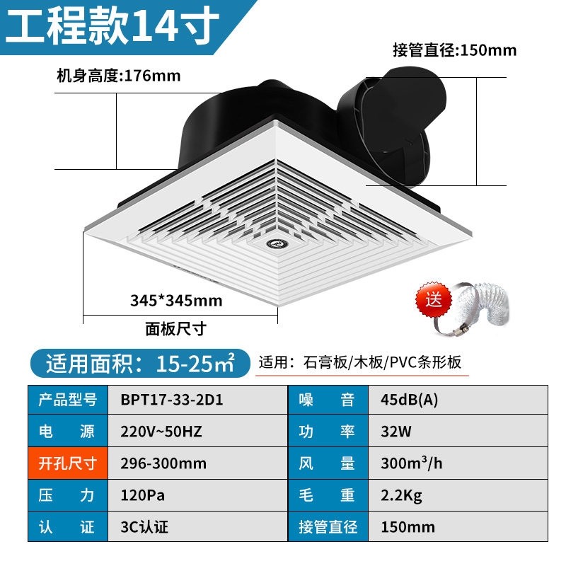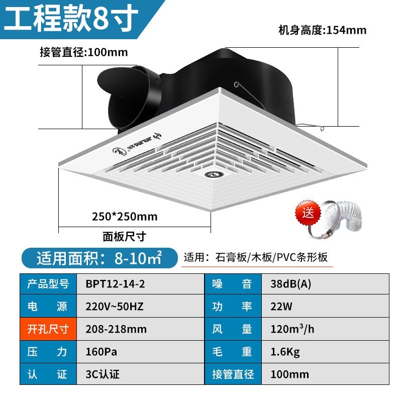 金羚天花排气扇厨房家用吊顶换气生间排风扇厕所抽风机石膏板扇卫