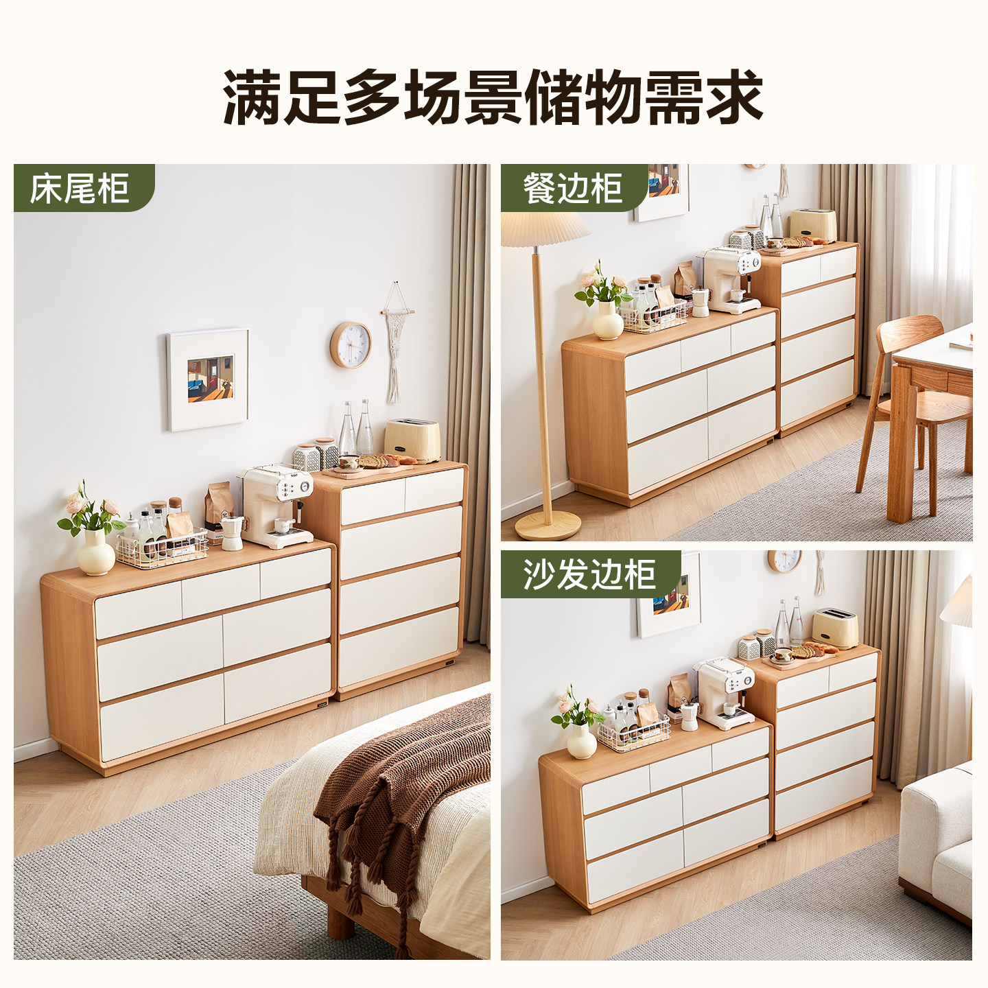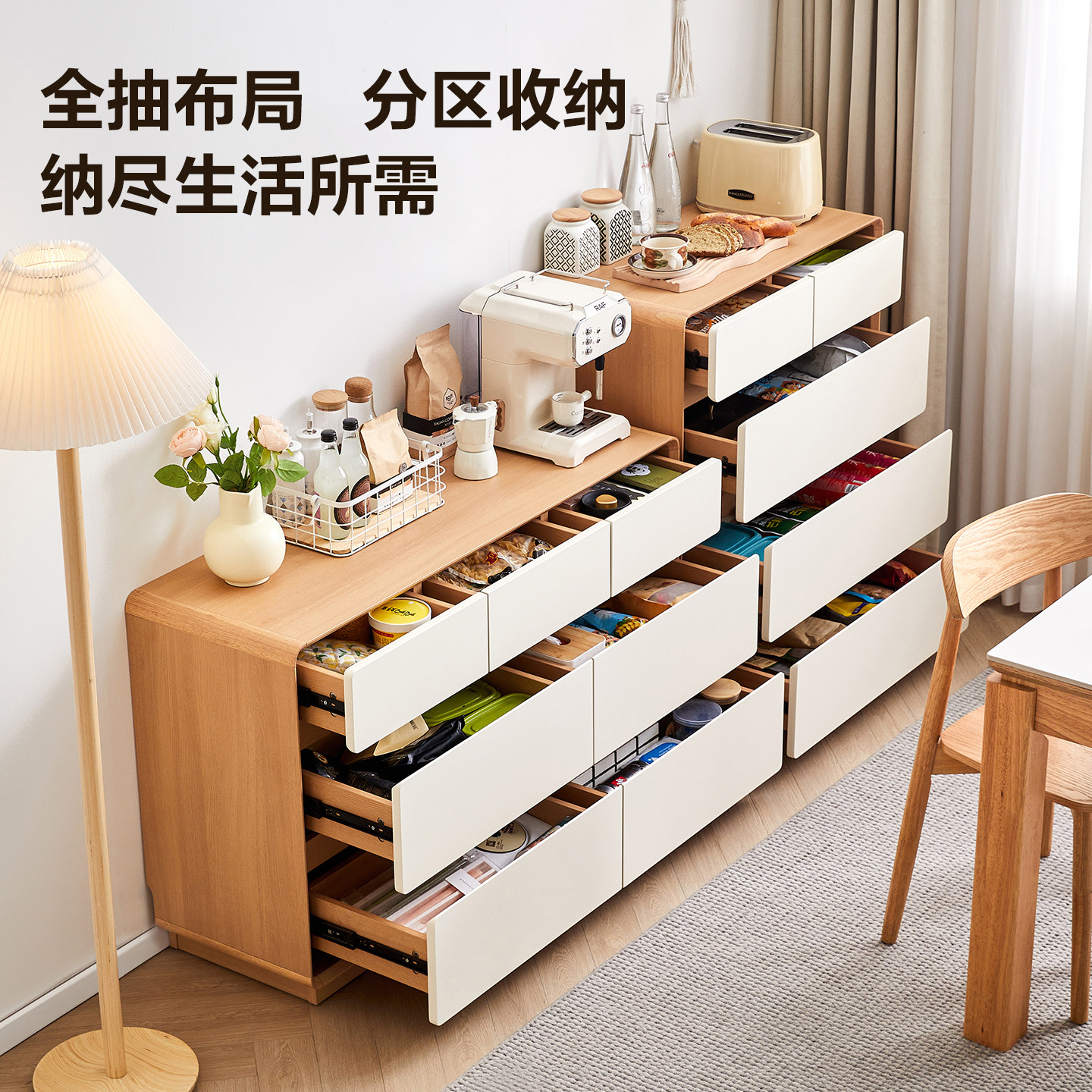 全友家居奶油原木风储物九斗柜客厅靠墙沙发旁边柜卧室床尾抽屉柜