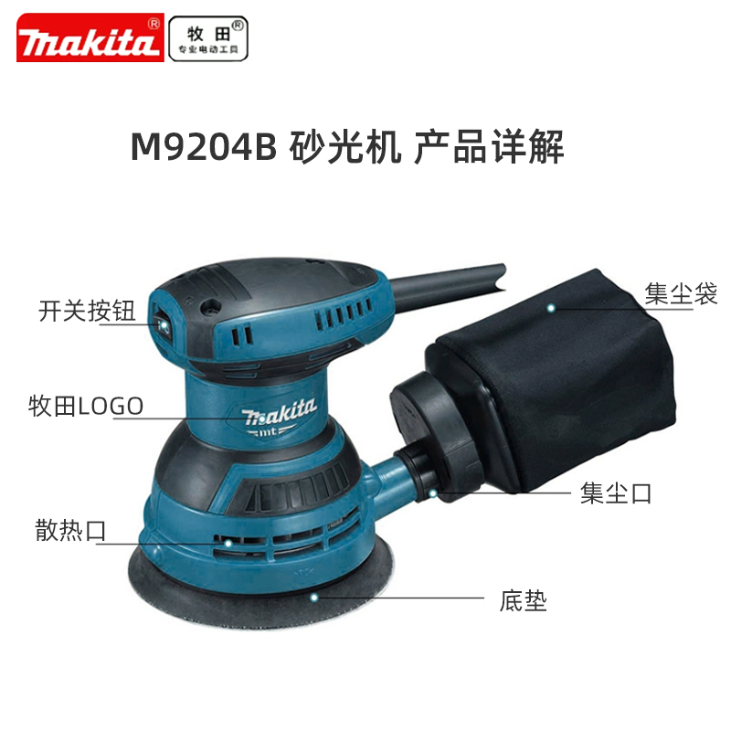 牧田5寸8孔电动砂纸机9024B打磨机汽车家具原子灰无尘抛光干磨机