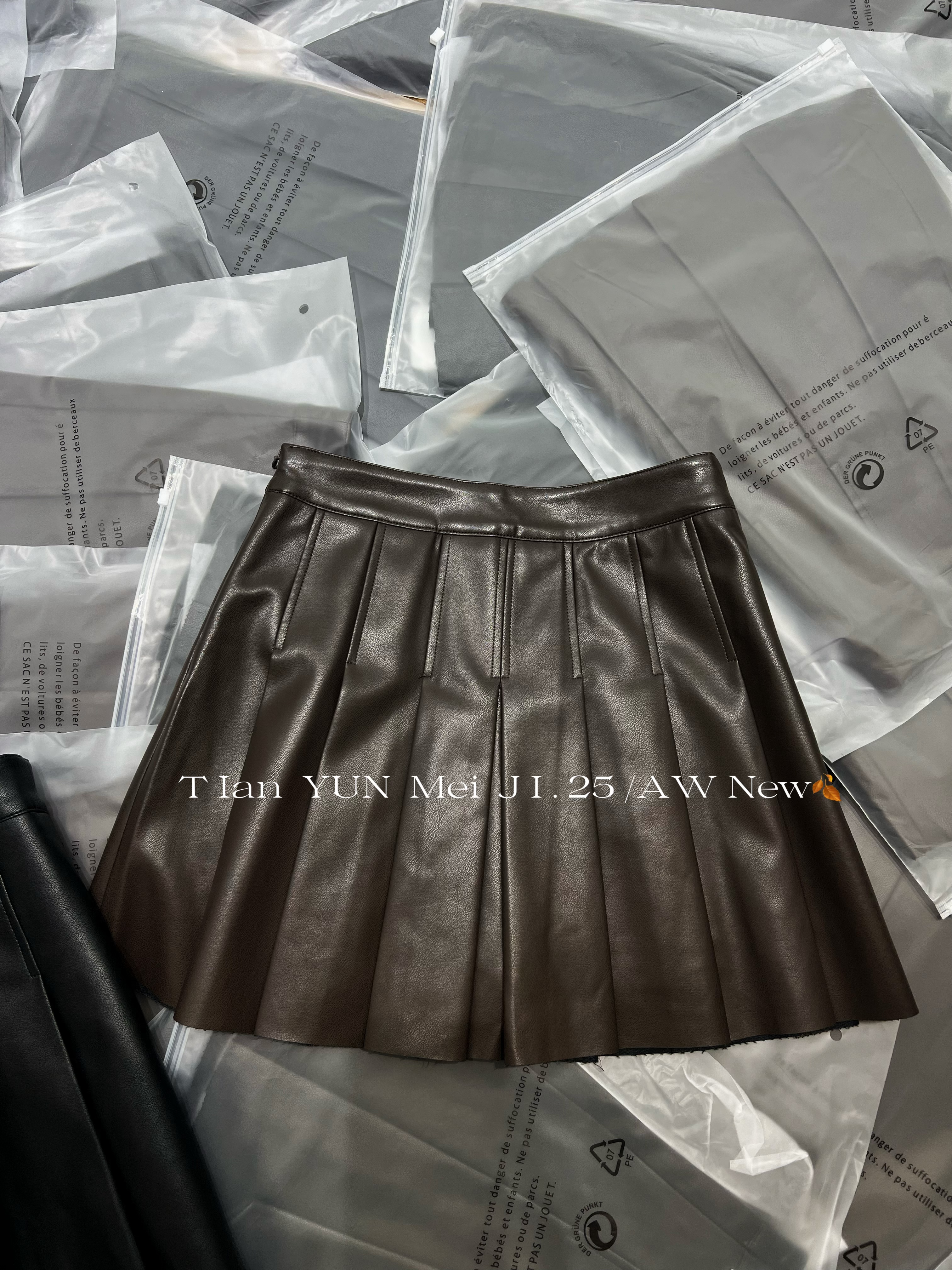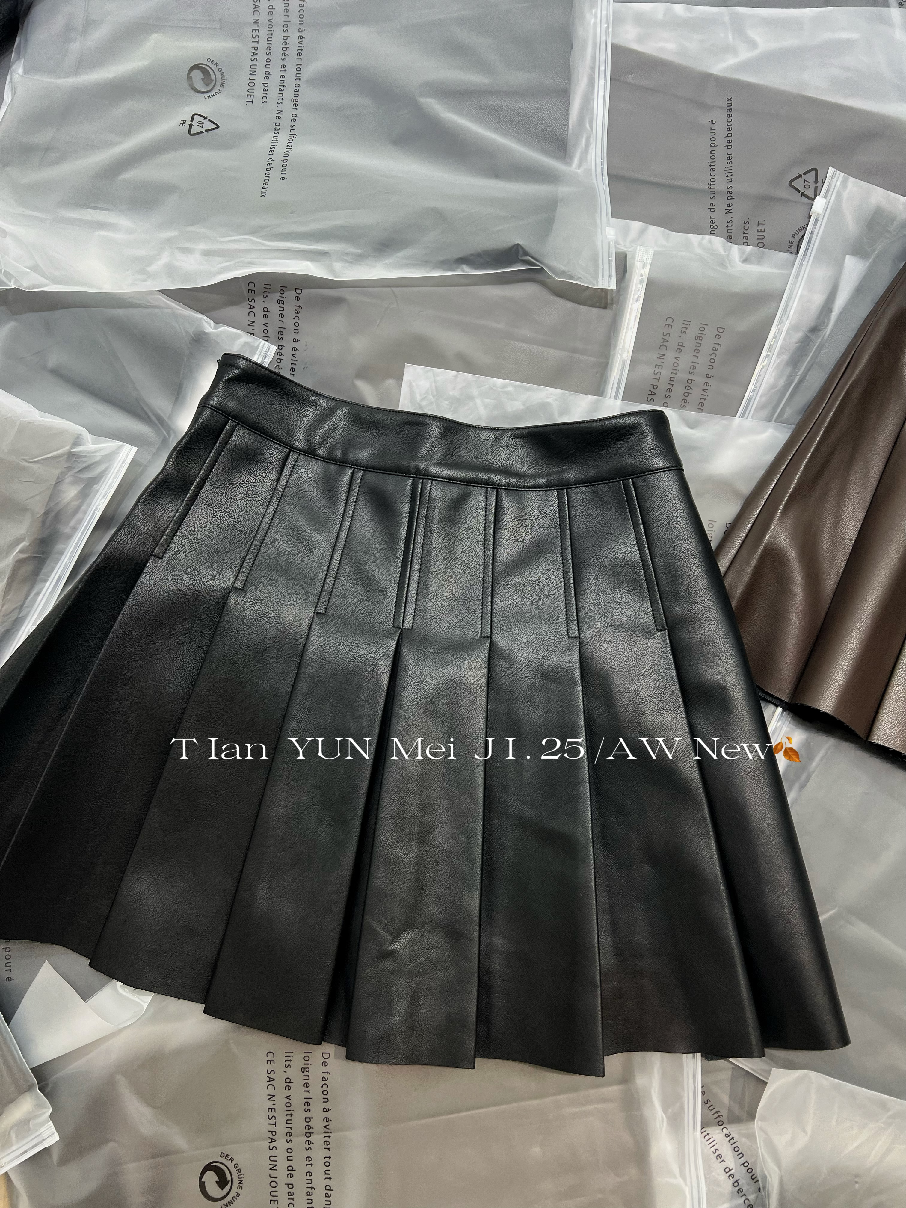 欧洲站2025秋季新款真皮皮裙女短裙半身裙高腰显瘦a字减龄百褶裙
