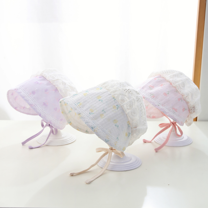 婴儿帽子夏季薄款防晒帽宝宝遮阳帽女渔夫帽婴幼儿蕾丝太阳帽新款