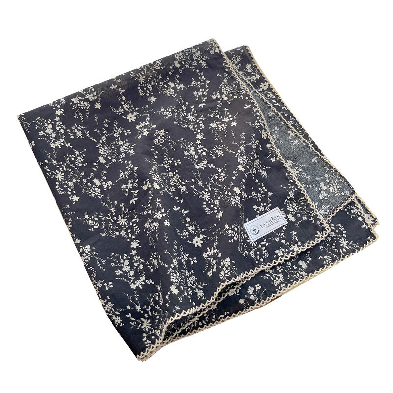 新款纯棉纱围巾黑米小方巾丝巾发带春夏季护颈巾女士头巾碎花复古