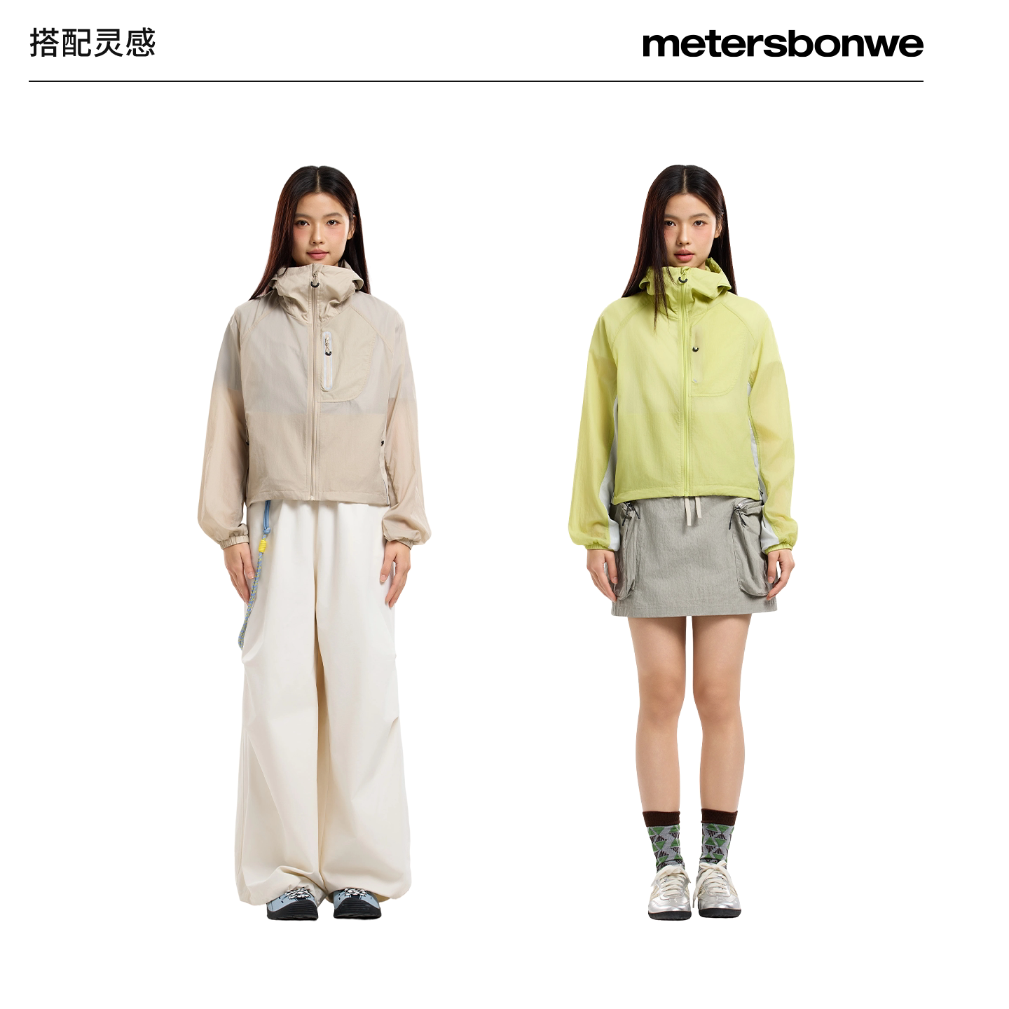 [商场同款]美特斯邦威防晒衣女25春新短款透气宽松连帽设计感外套