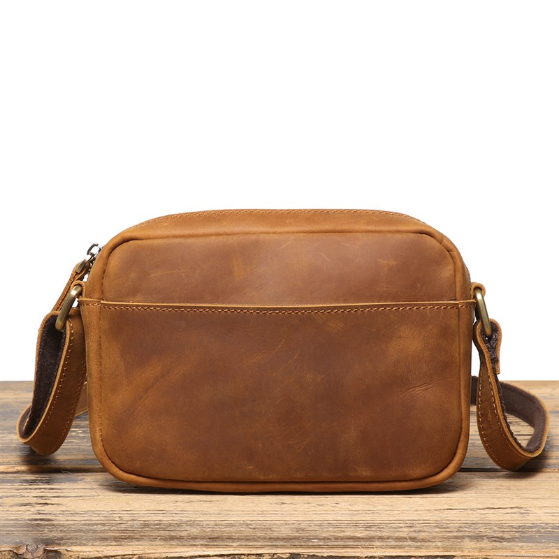 复古疯马皮男士单肩包牛皮斜挎小背包真皮邮差小包手机背包女包