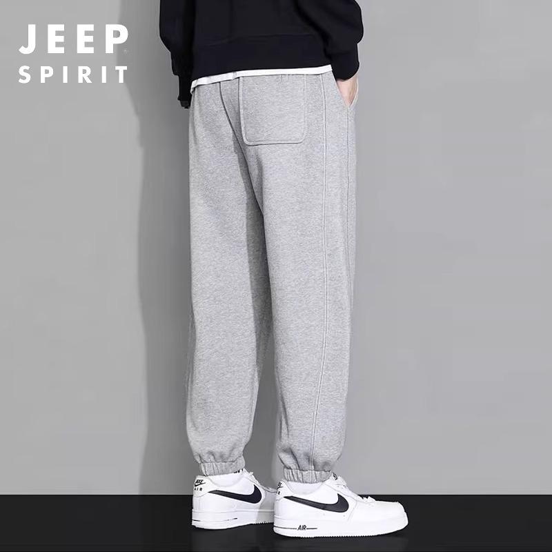 吉普JEEP休闲裤男春秋冬季宽松纯棉薄款加绒可选卫裤束脚运动裤潮