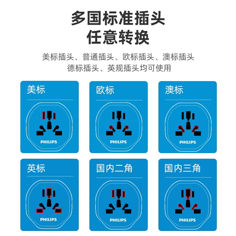 飞利浦插座usb多国际通用转换插头旅行欧标日本德标韩美香港地区