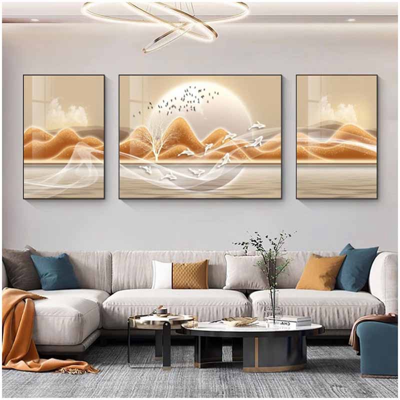 高级感沙发背景墙挂画2025新款三联画背有靠山聚财山水画客厅壁画