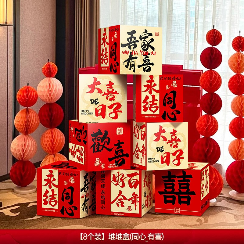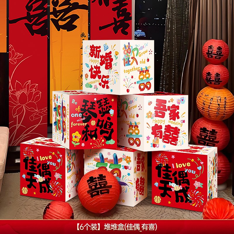婚房布置全套装立体喜字落地摆件男女方婚礼卧室客厅堆堆盒子装饰