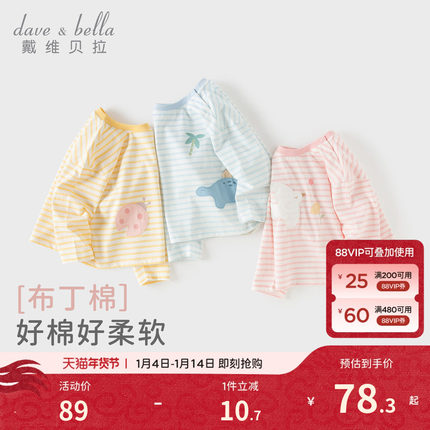 戴维贝拉女童条纹T恤2026新款春装男童纯棉长袖打底衫儿童A类上衣