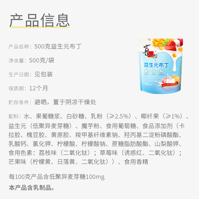 喜之郎益生元布丁果冻500g*1袋荔枝草莓芒果混合口味儿童休闲零食
