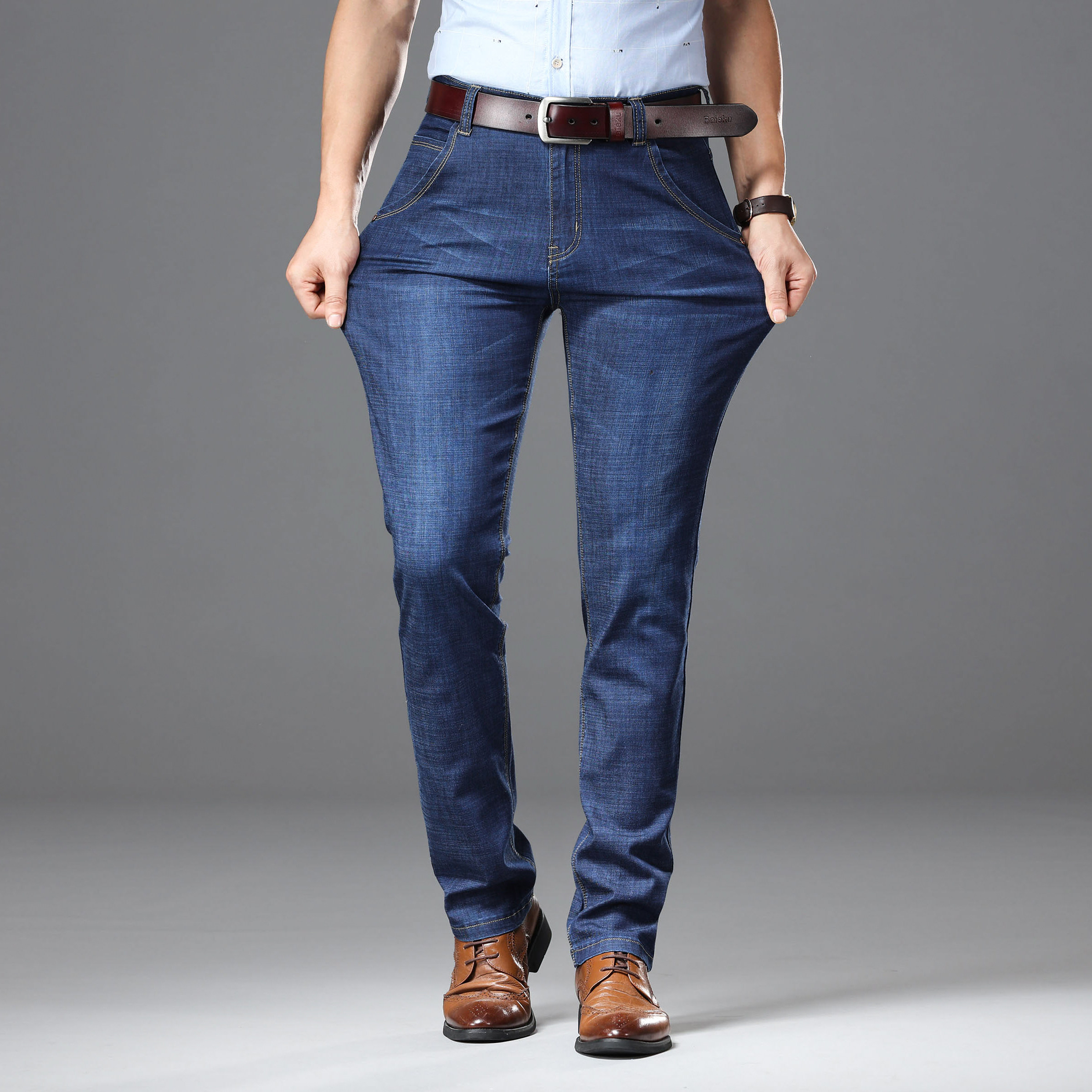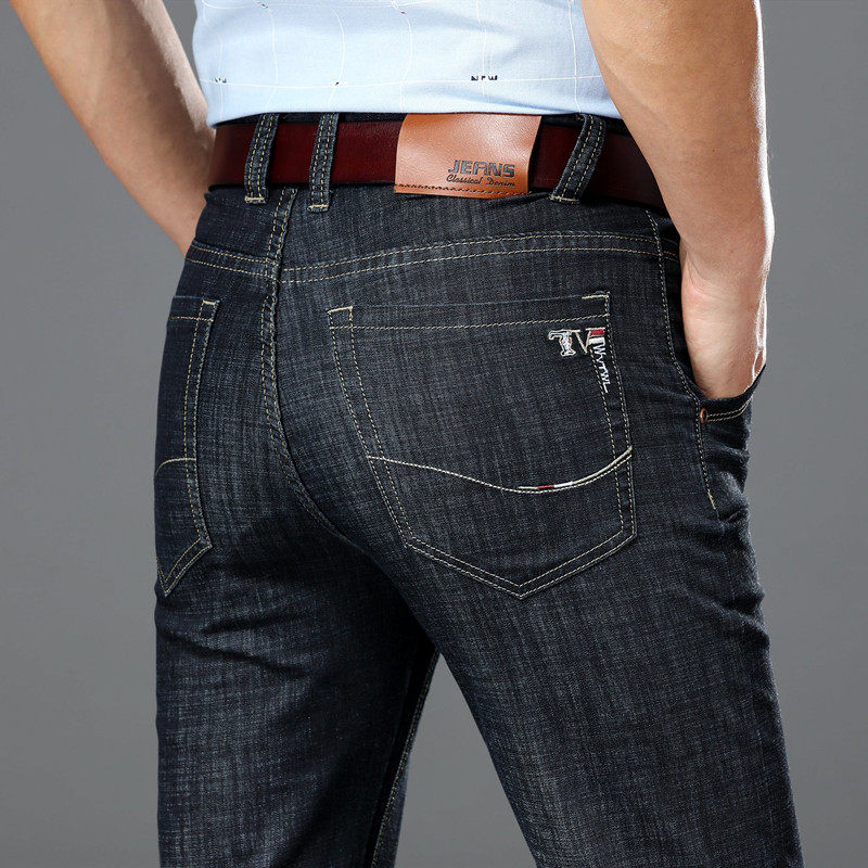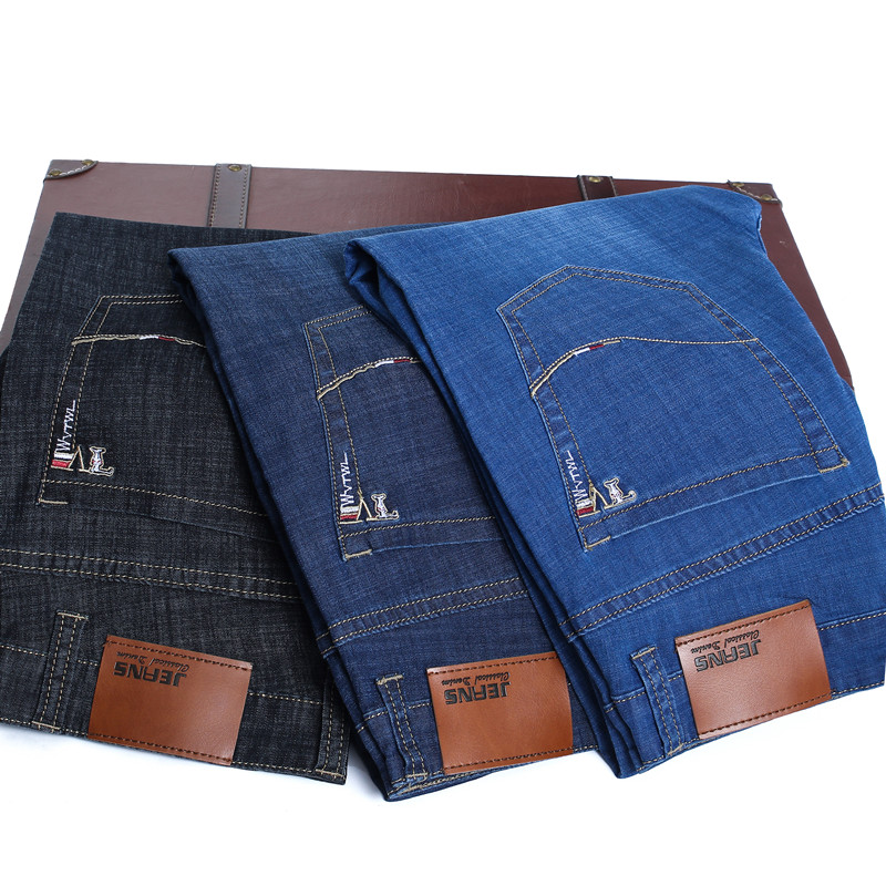 夏季薄款黑色牛仔裤男士休闲高腰弹性宽松加肥加大码肥佬胖子长裤