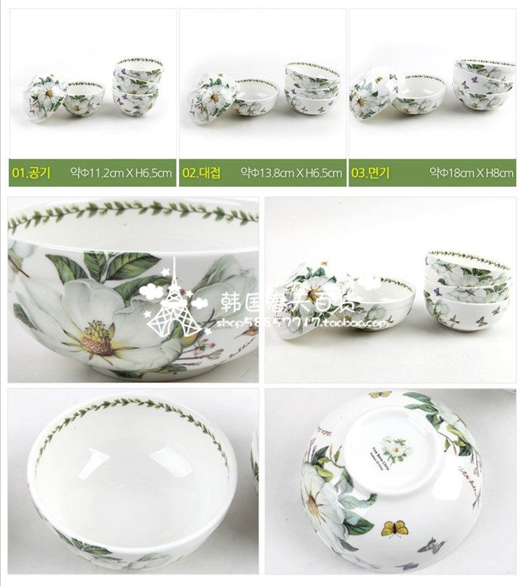 韩国进口白玉兰花饭碗陶瓷汤碗大中小号餐具骨瓷套装白玫瑰5P装
