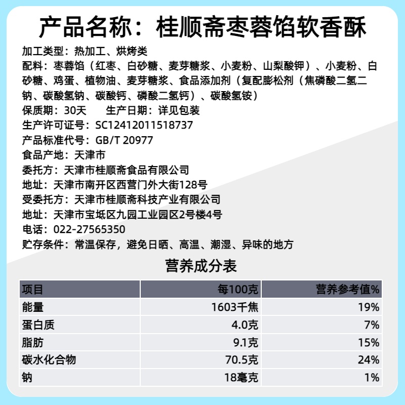 天津特产桂顺斋枣泥馅软香酥枣泥条栗子玛老式传统手工清真糕点心