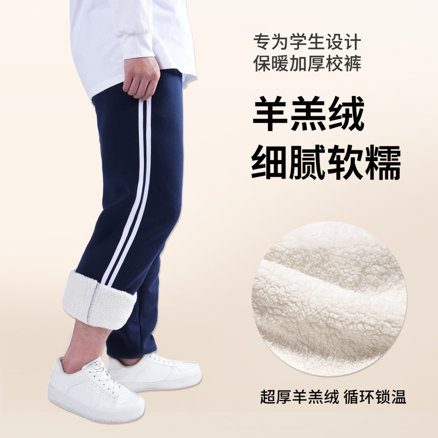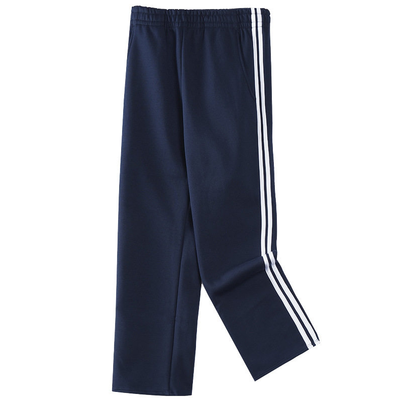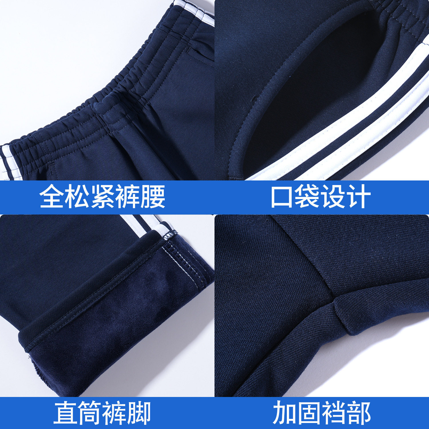 儿童藏青色加绒加厚运动裤小学生校服裤一条边两道三道杠直筒长裤