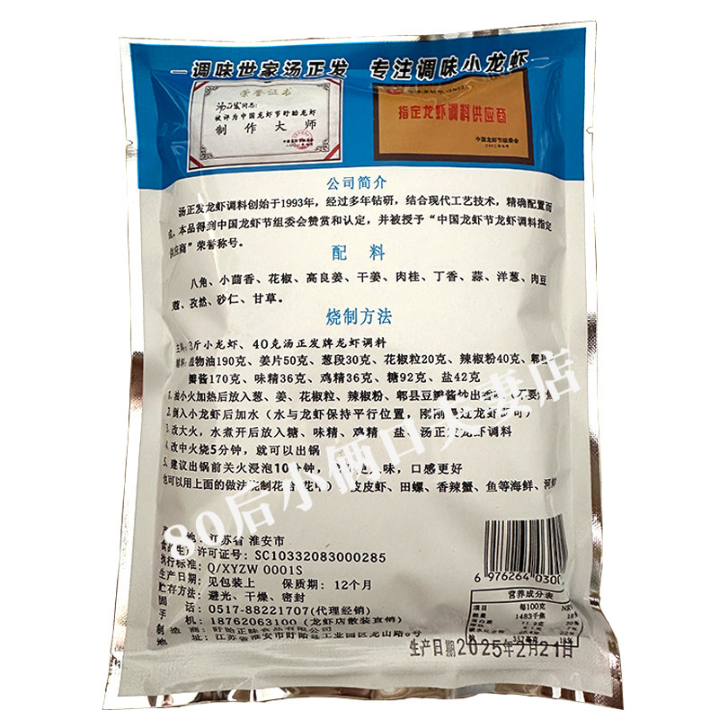 汤正发盱眙龙虾调料250克 浓香型 十三香麻辣小龙虾料 包邮多省