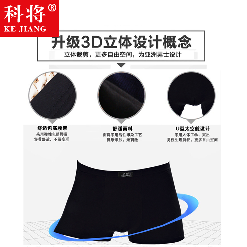 科将男士内裤男平角裤青年中腰透气莫代尔加肥加大码宽松四角裤头
