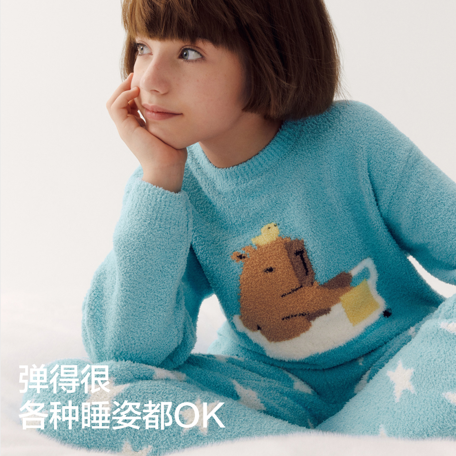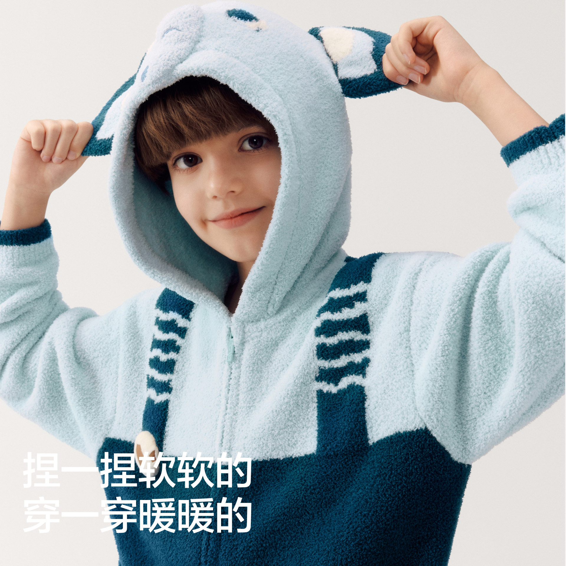 蕉内绒绒5系男童半边绒连帽加厚家居服套装冬亲子装女童儿童睡衣