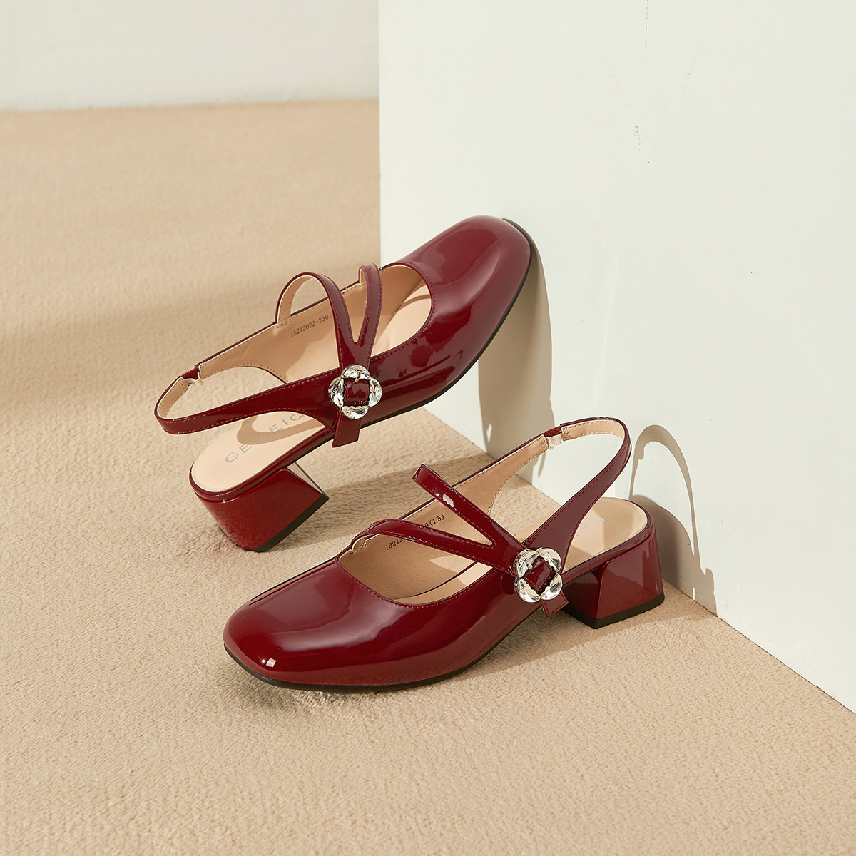 戈美其粗跟红色单鞋女2025新款凉鞋女款夏季配裙子外穿婚鞋新娘鞋