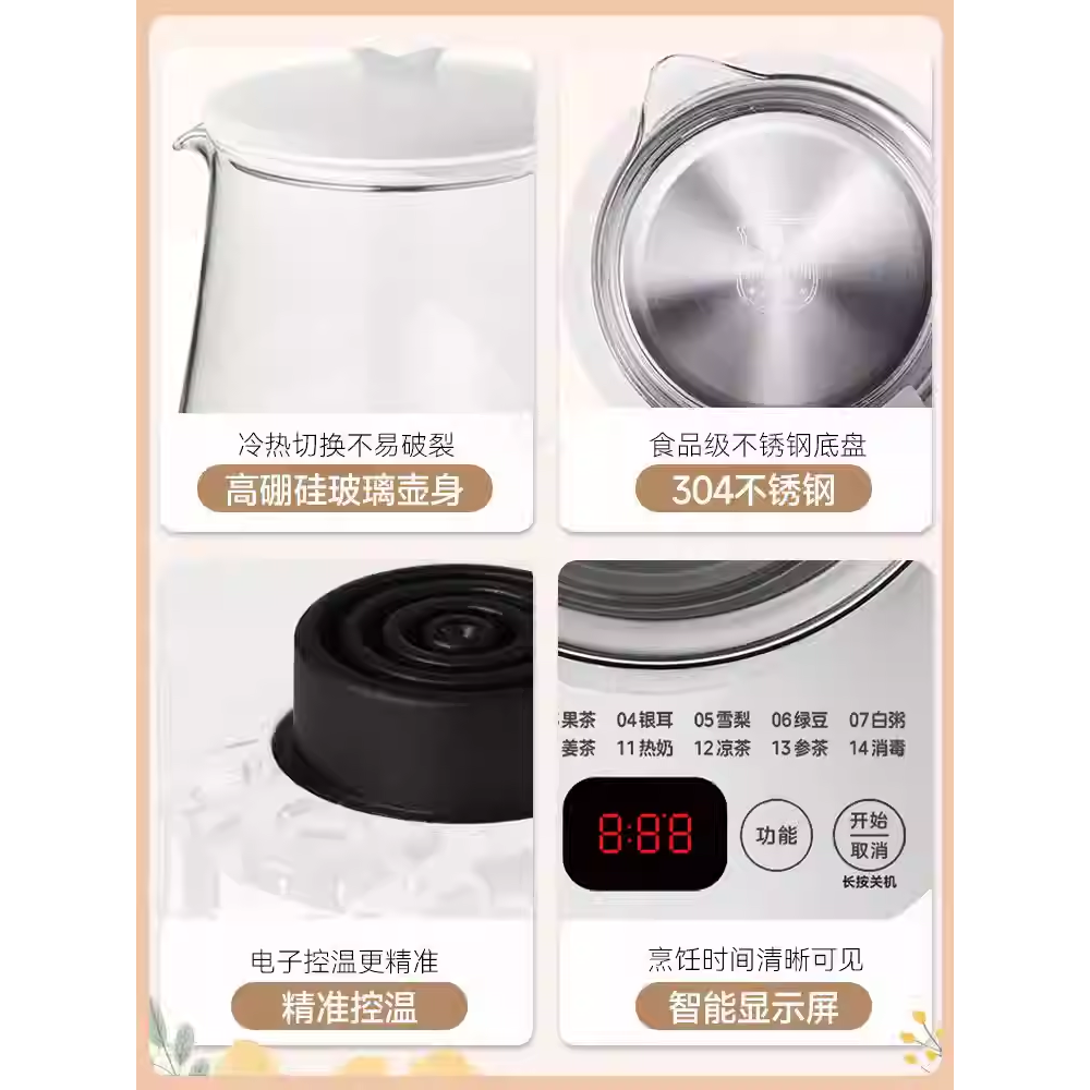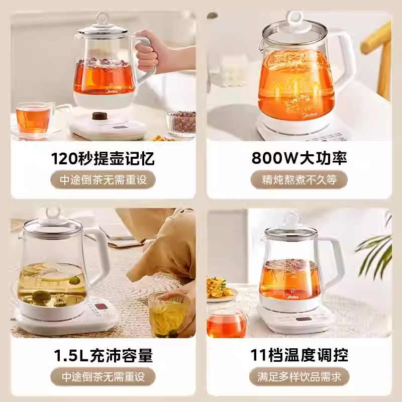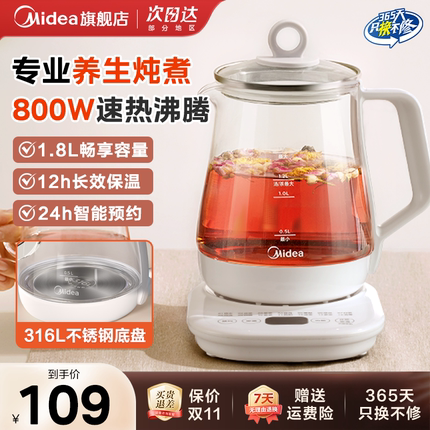 美的养生壶小型家用办公室炖煮一体煮茶器保温家用多功能烧水壶