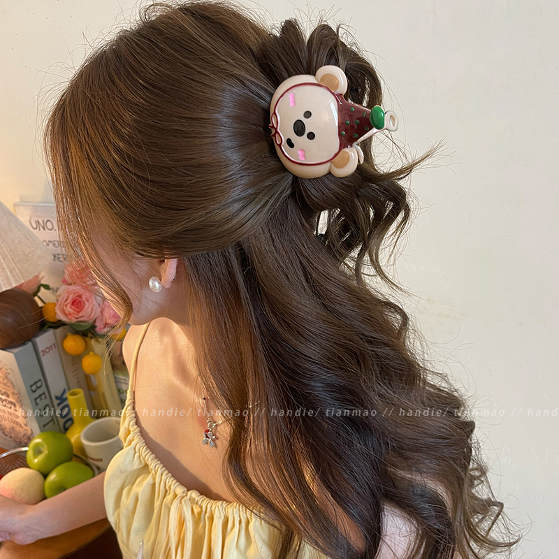 韩系可爱小熊发夹抓夹女高级感2025新款高马尾后脑勺鲨鱼夹半扎发