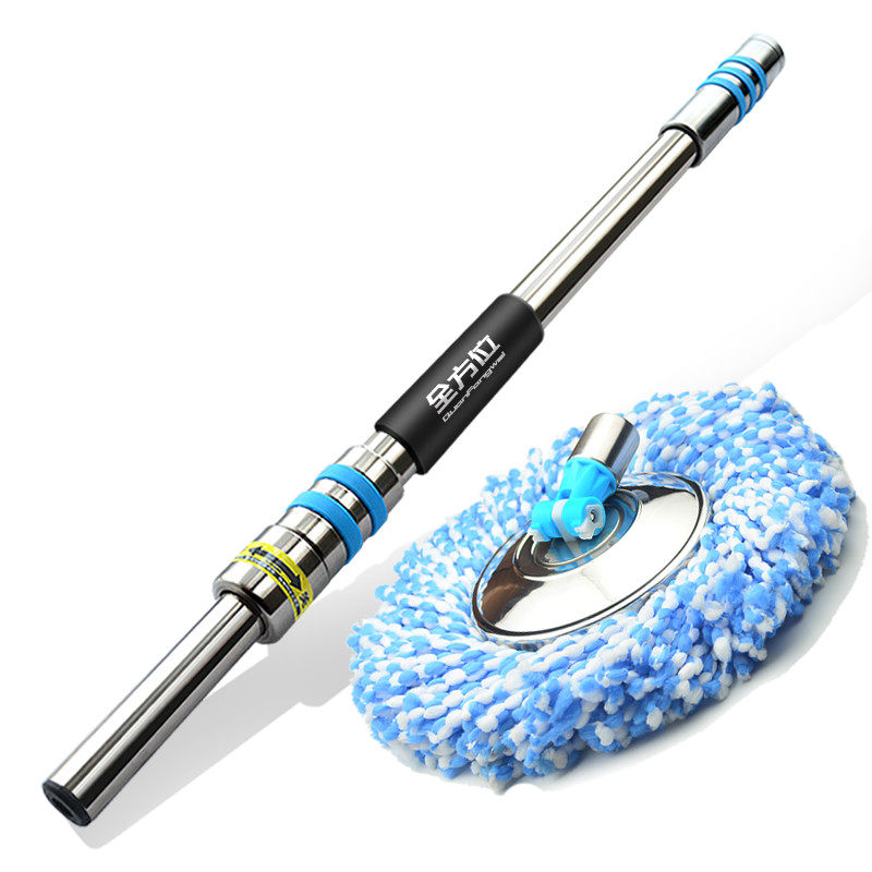 不锈钢加厚旋转拖把杆通用一体手压式拖布杆拖把头墩布头替换配件