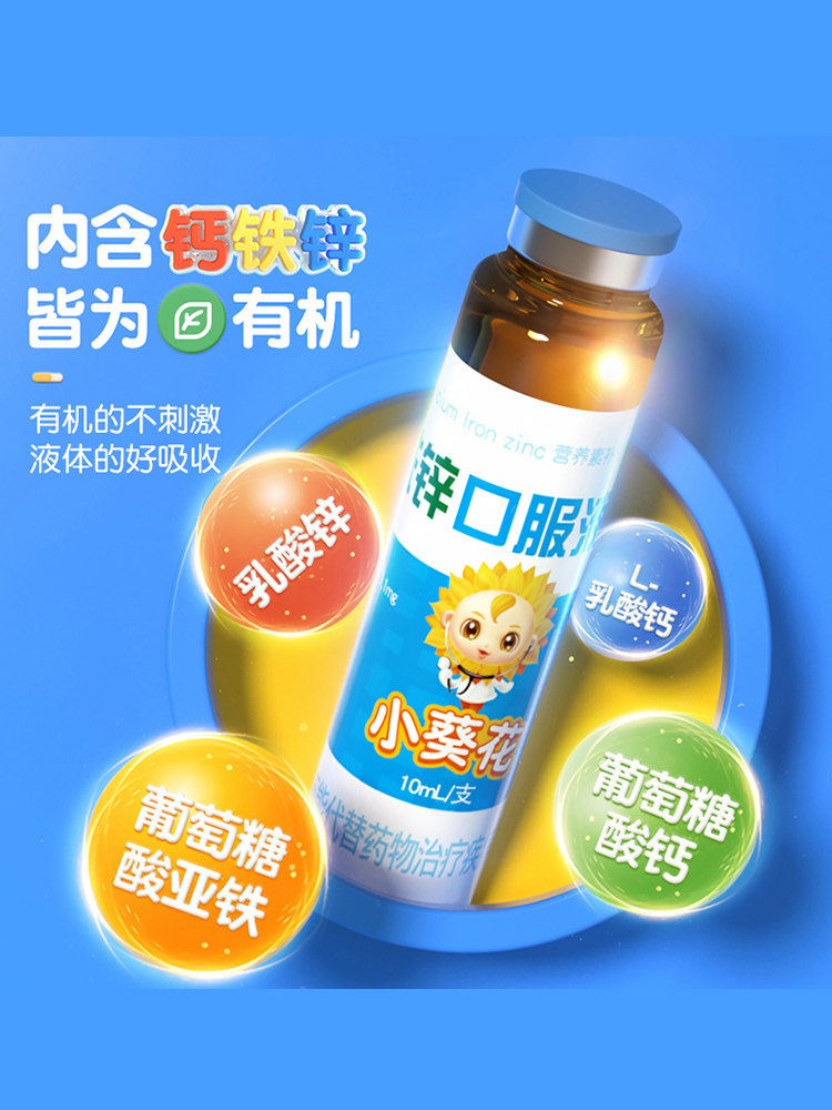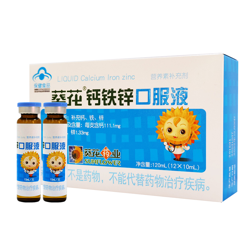 小葵花钙铁锌口服液三精蓝瓶液体宝儿童补钙铁锌