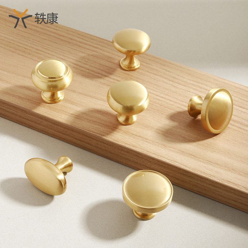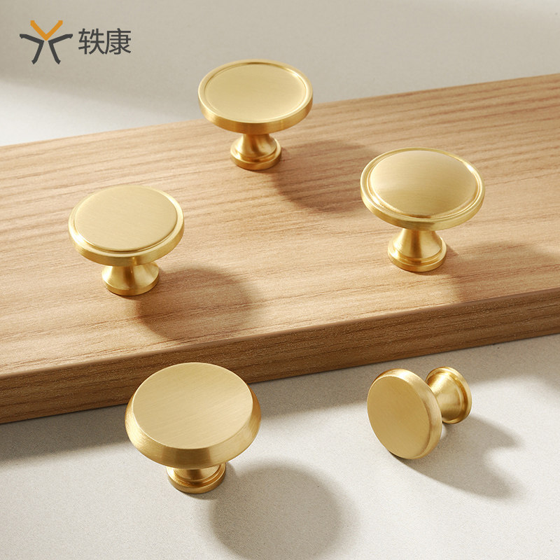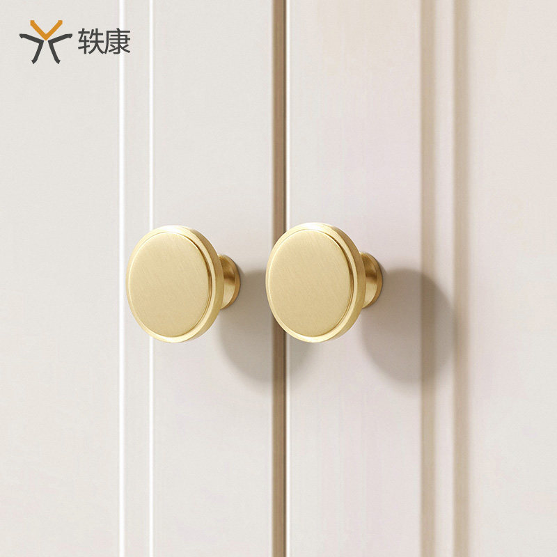 黄铜柜门拉手单孔全集现代简约轻奢衣柜抽屉橱柜拉手圆形金色把手