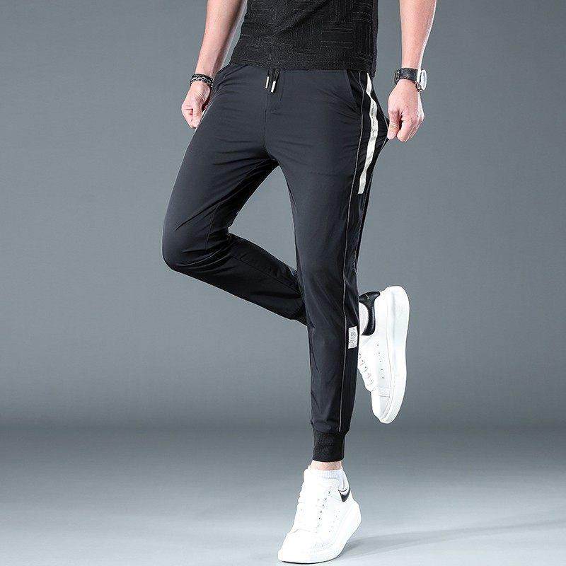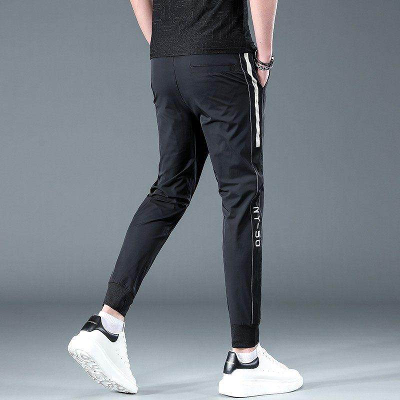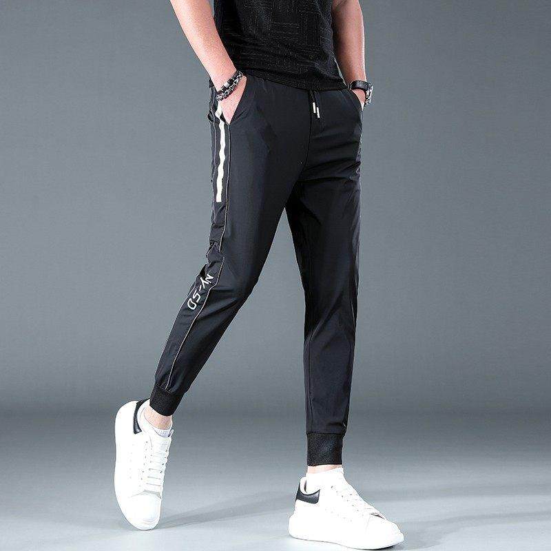 高端夏季薄款冰丝速干休闲 裤男潮牌修身束脚运动裤韩版潮流九分