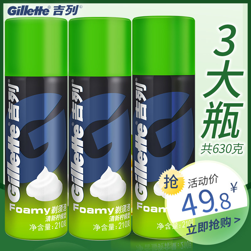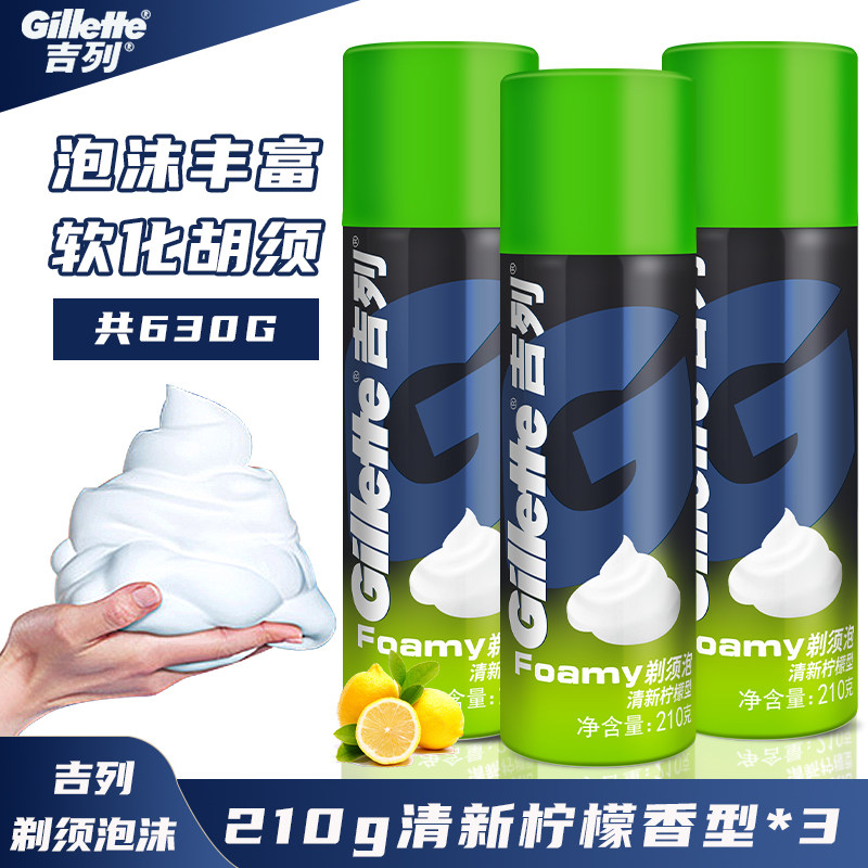 吉列剃须泡沫3大瓶共630克男士吉列剃须刀刮胡泡剃须膏剃须啫喱