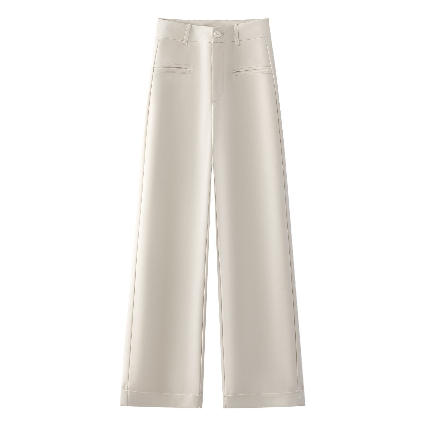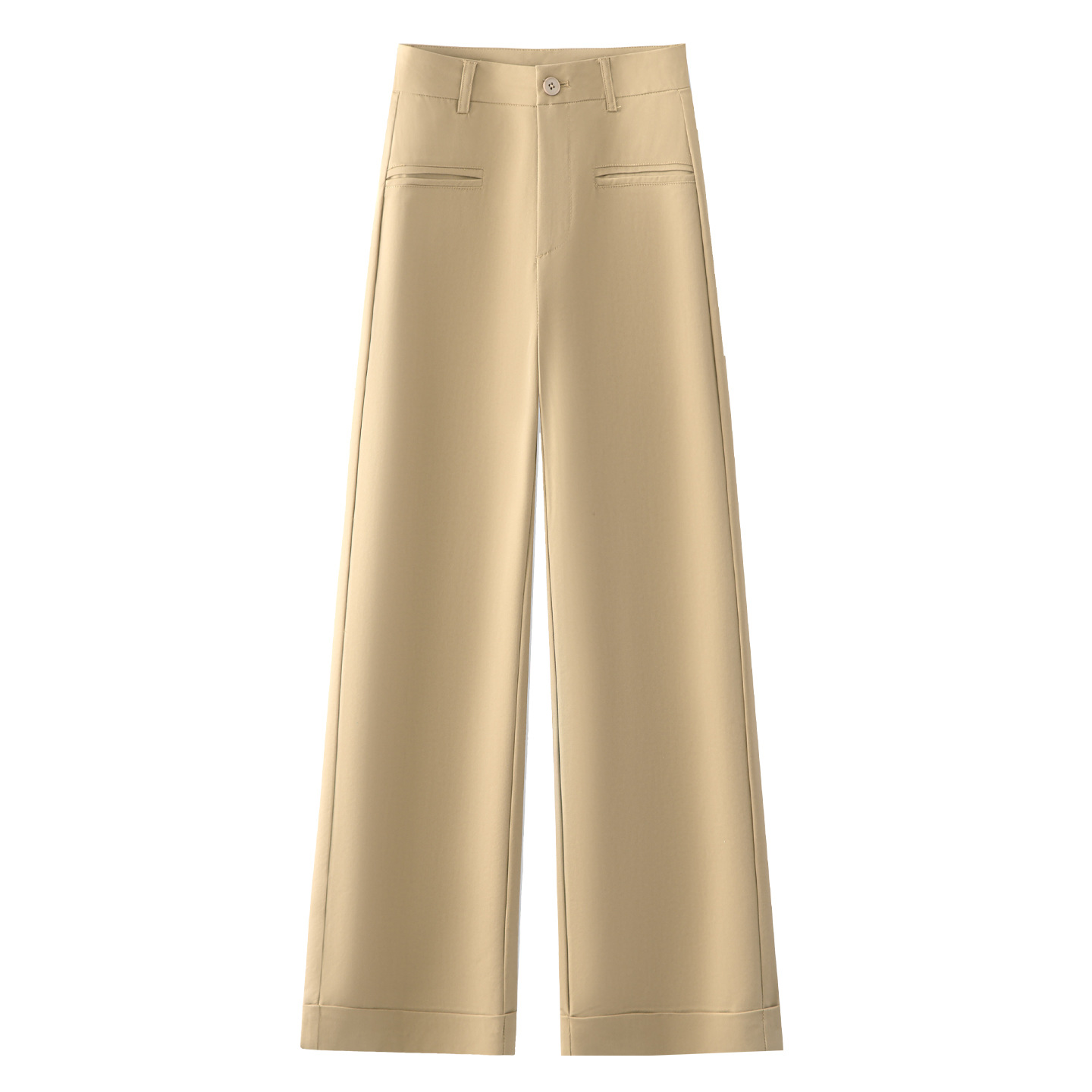 城市衣柜村上春正品费依女裤片段奶杏色天丝阔腿裤女2025新款夏季