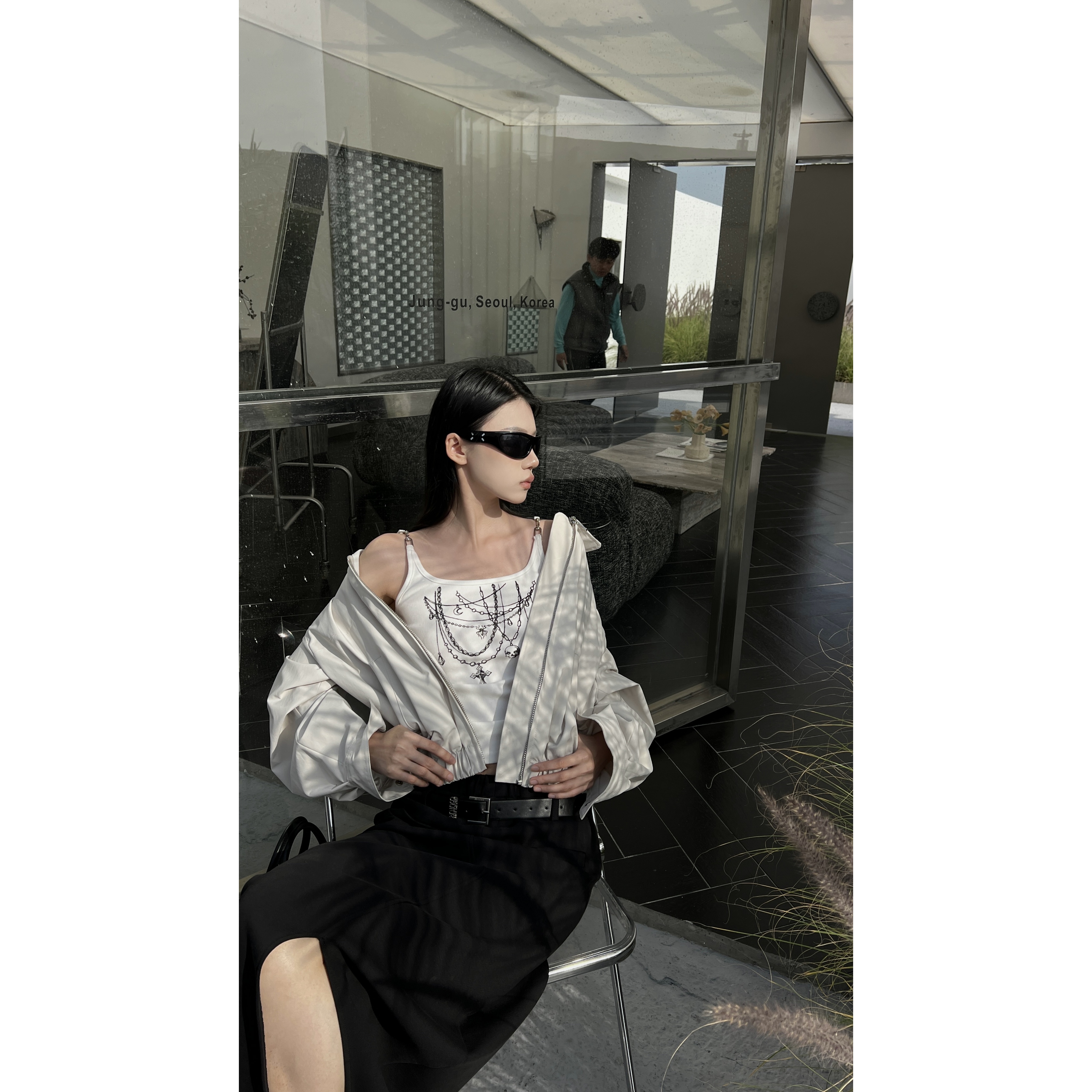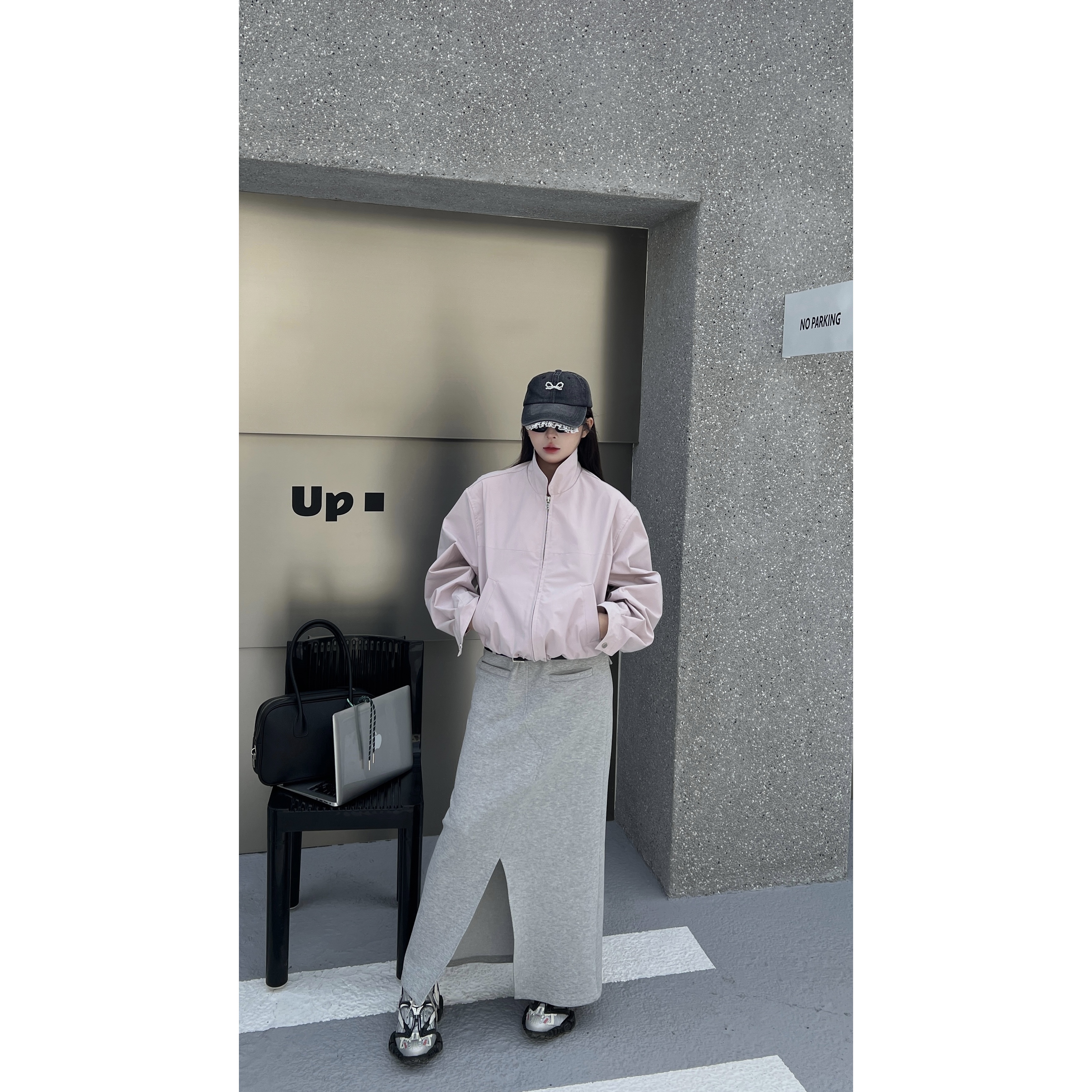 Esu 美式复古短款风衣面料夹克上衣女设计感小众百搭短外套