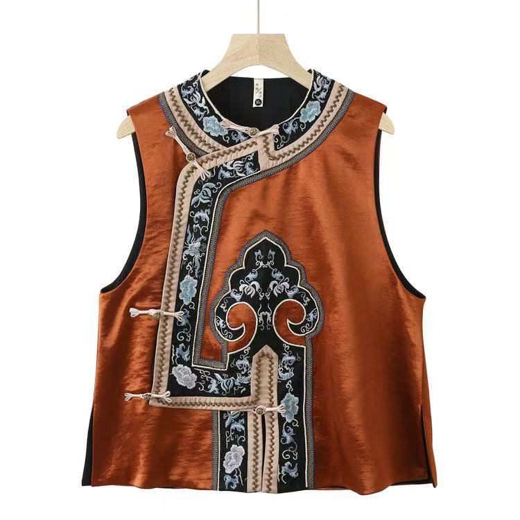 2025如意马甲新款中式复古重工印花国风背心盘扣唐装遮肉坎肩上衣