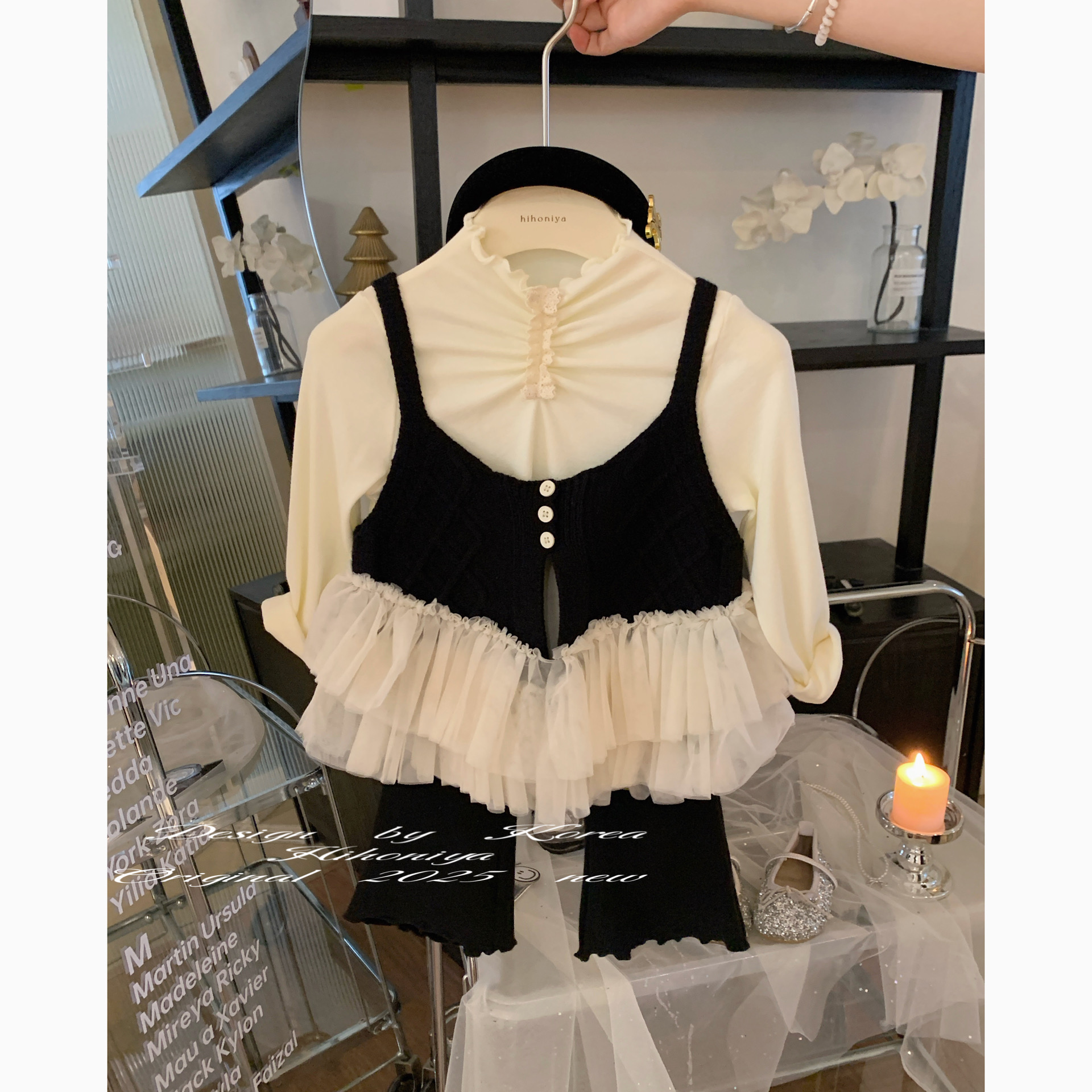 Spring韩国童装2025年秋季新款宝宝长袖衬衣女童无袖百搭吊带背心
