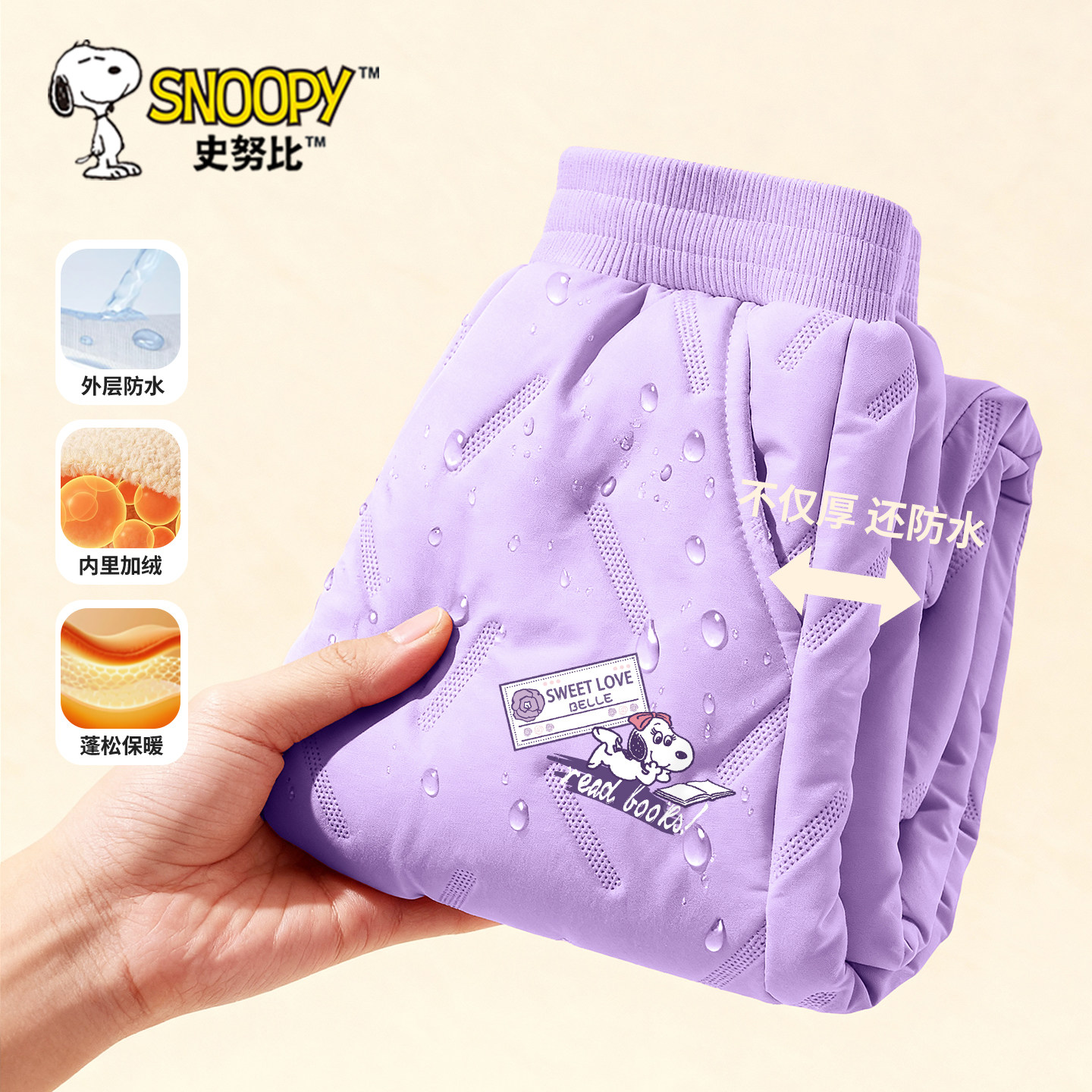 史努比女童加绒裤子2026新款冬季羽绒裤女孩羊羔绒裤儿童棉裤加厚