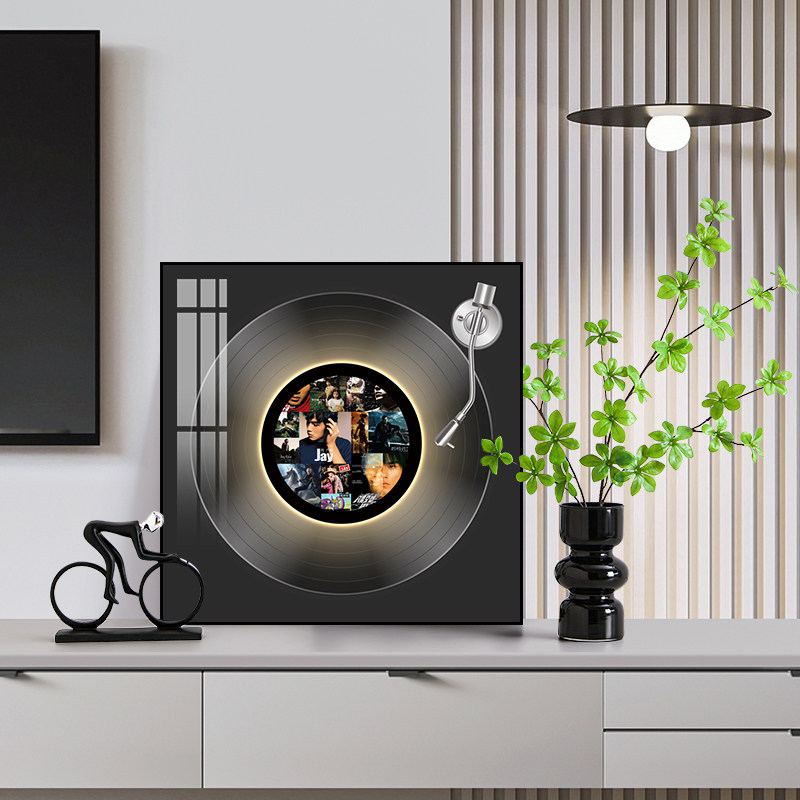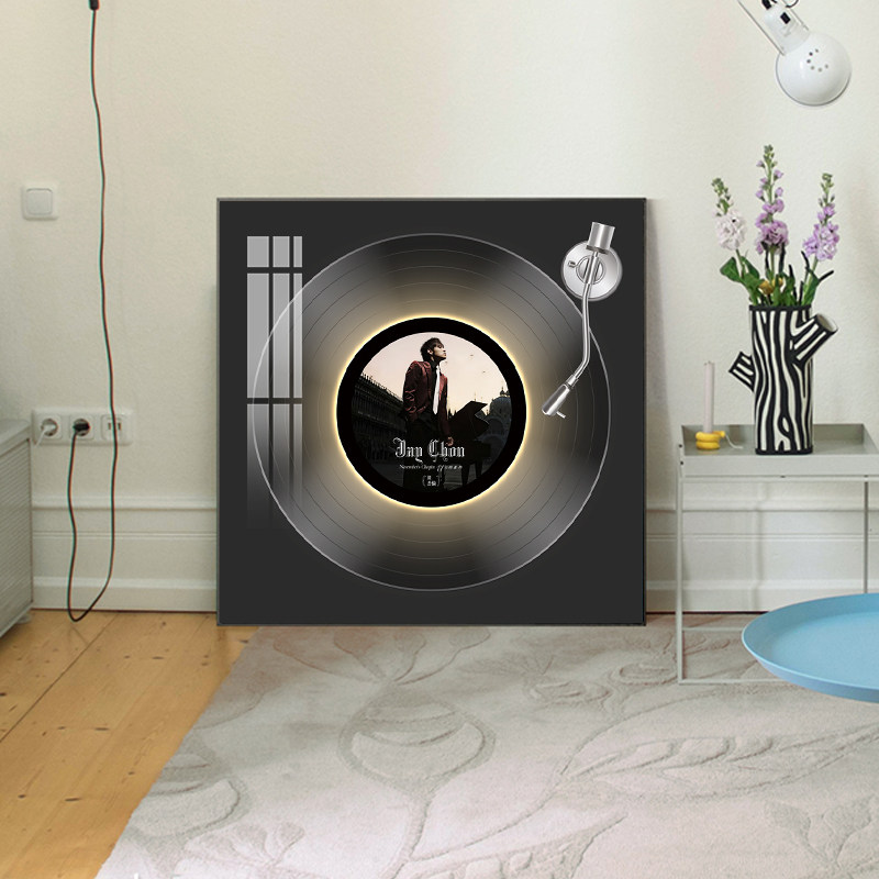周杰伦音乐装饰画黑胶唱片蓝牙音响创意摆画卧室氛围感发光画礼品