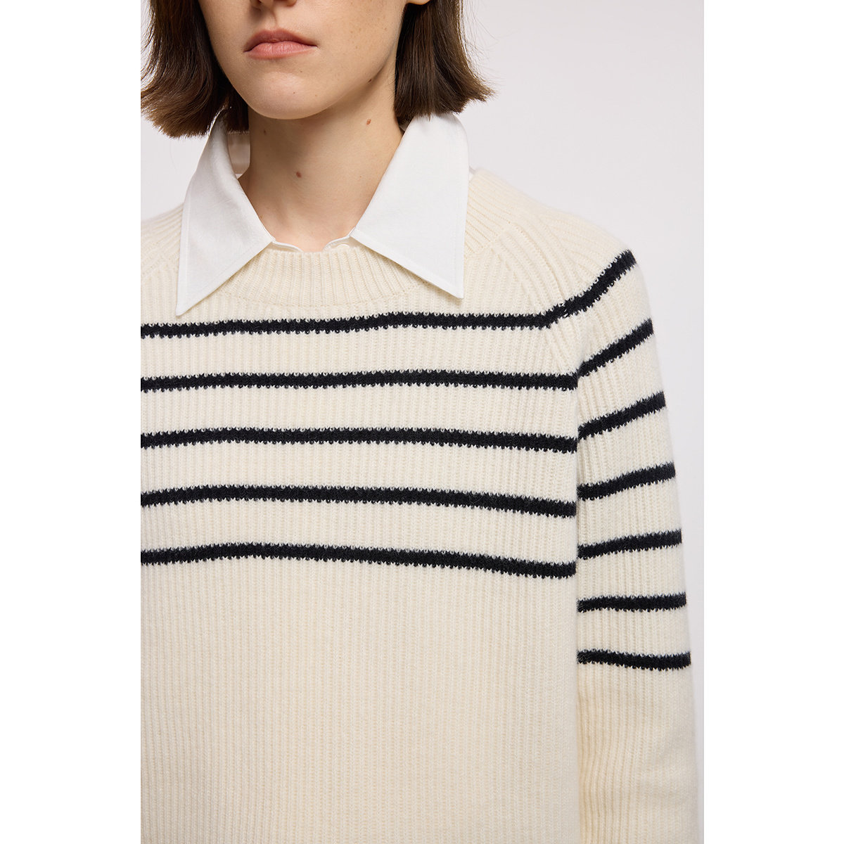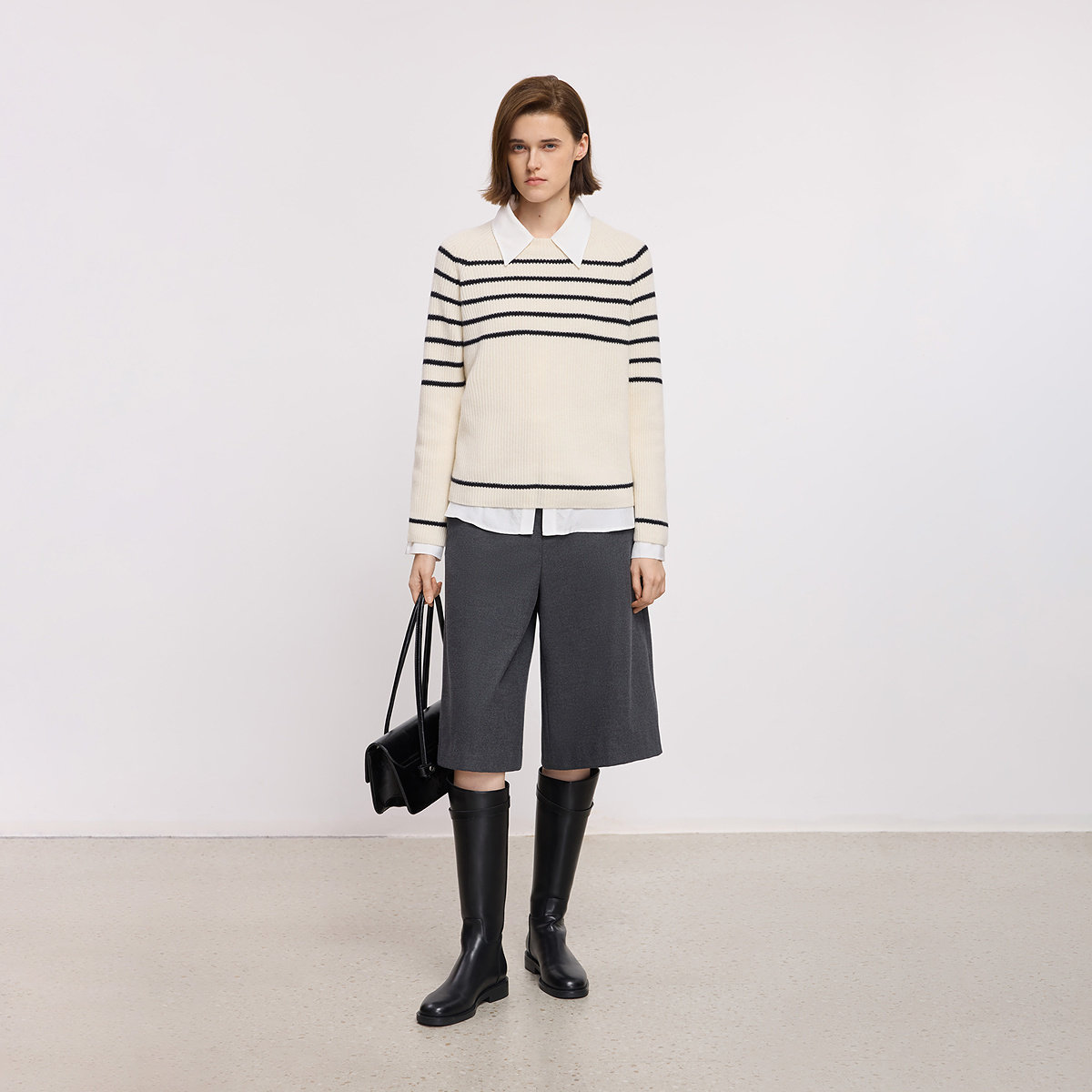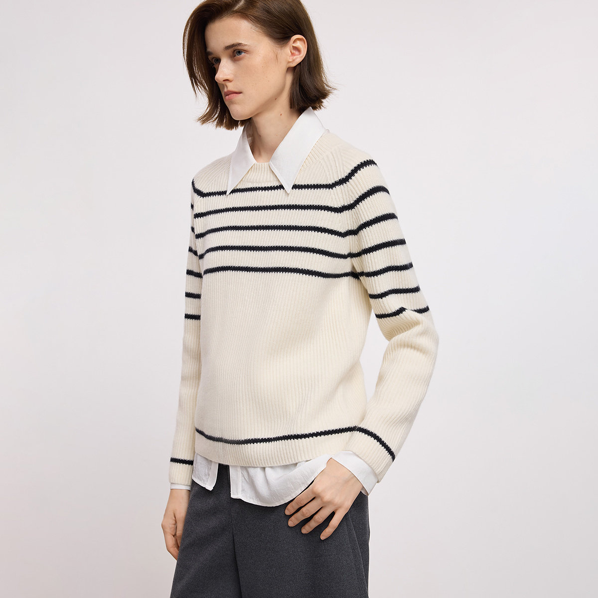 100%美丽诺羊毛LILY2025冬新款女装撞色条纹圆领套头针织衫毛衣
