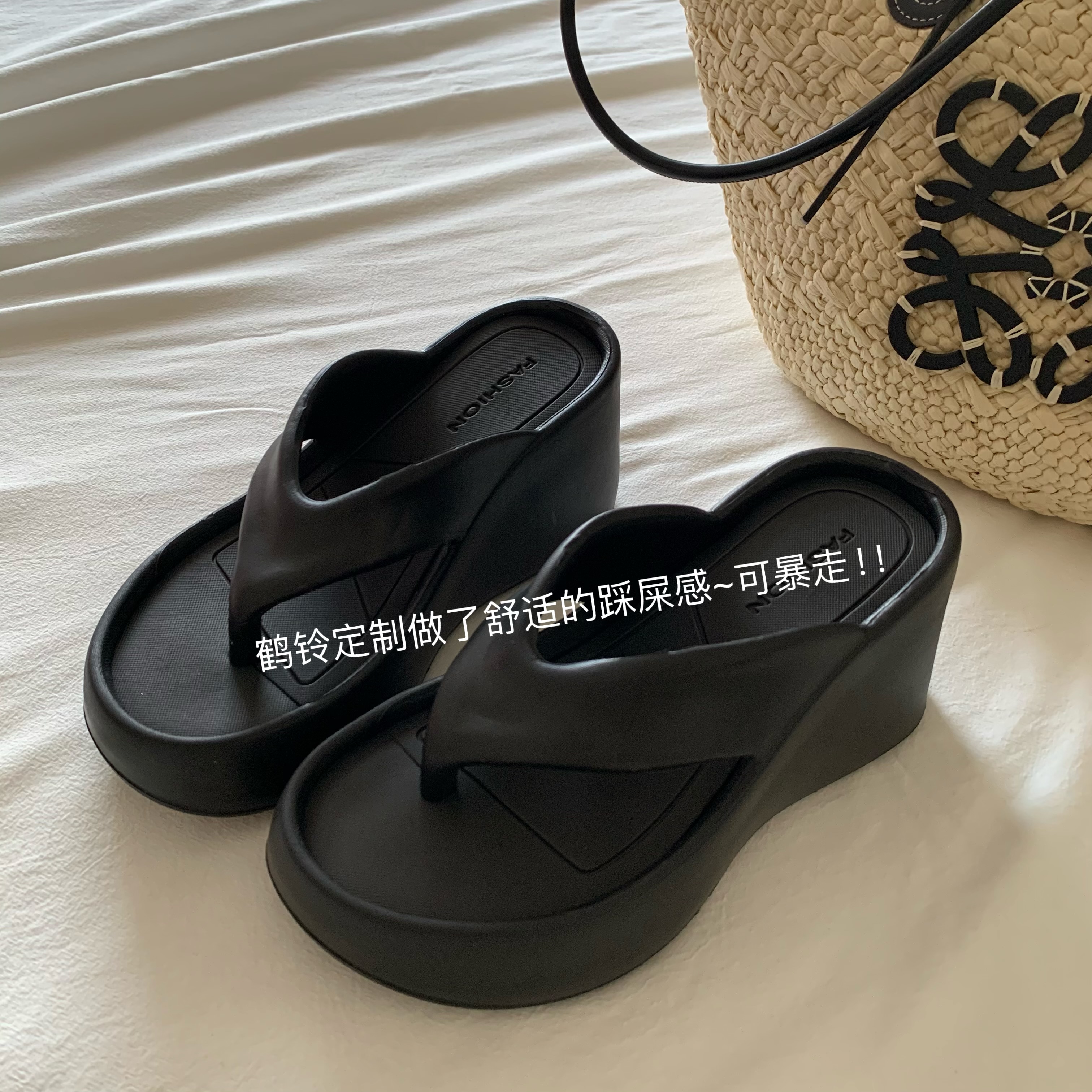 高定版!INS厚底增高踩屎感防滑人字拖女2025夏沙滩外穿凉拖鞋8cm