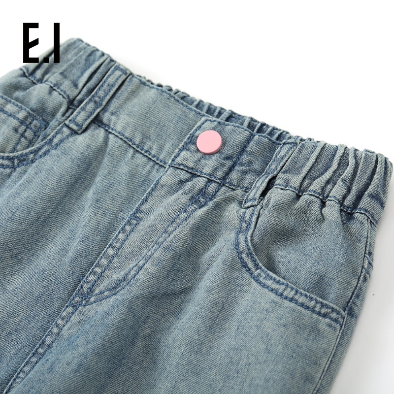 ei童装女童直筒牛仔长裤夏装新款中大童薄款窄版阔腿裤亲子装