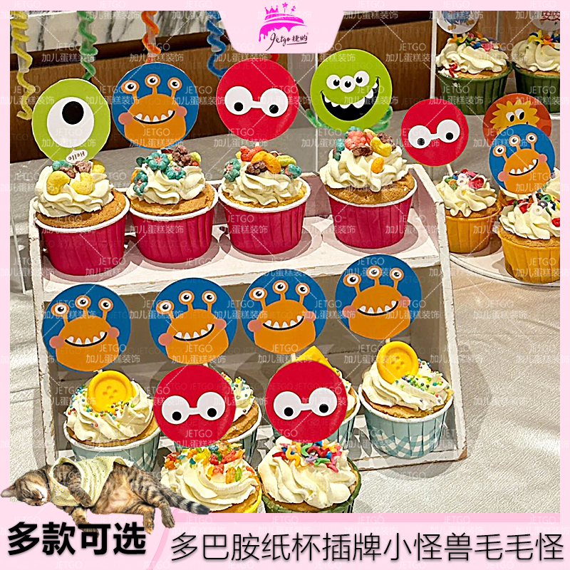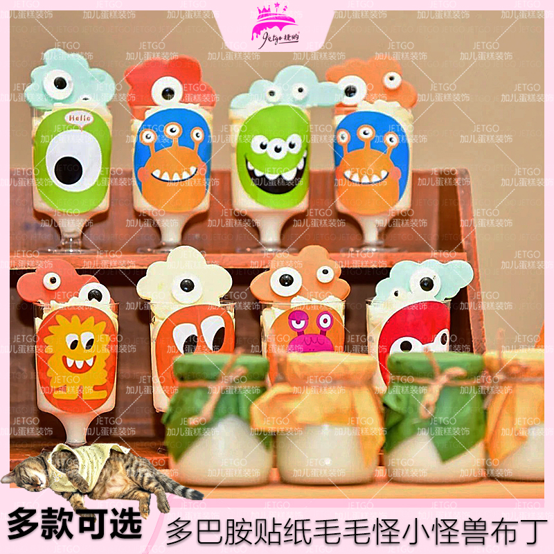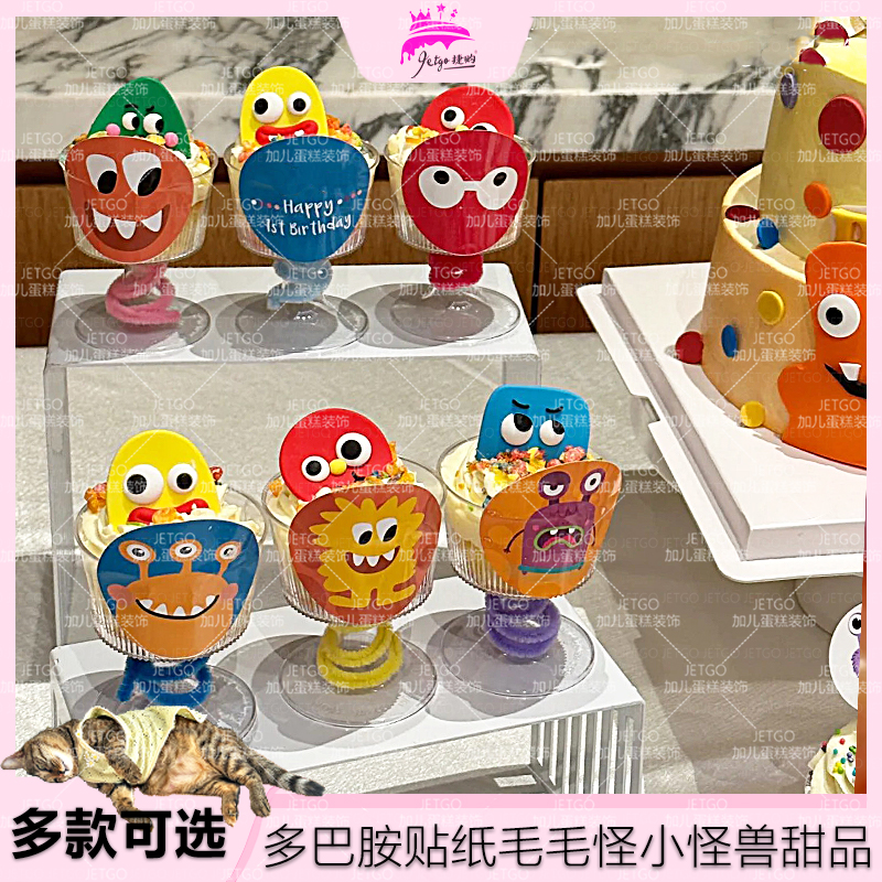 小怪兽贴纸糖果色甜品台装饰多巴胺推推乐主题卡通怪兽插件宝宝宴