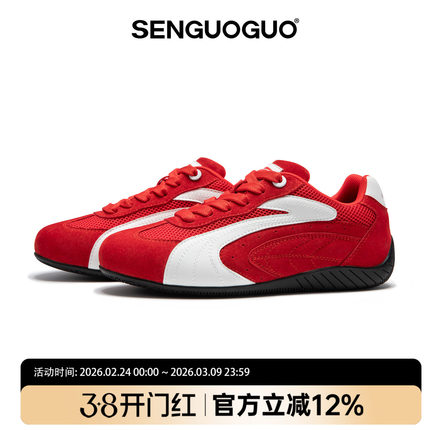 森果果 赛车鞋/白红色德训鞋男2026春季新款网面内增高鞋子板鞋女