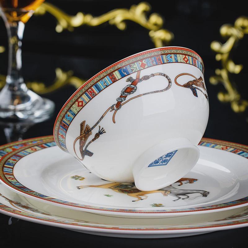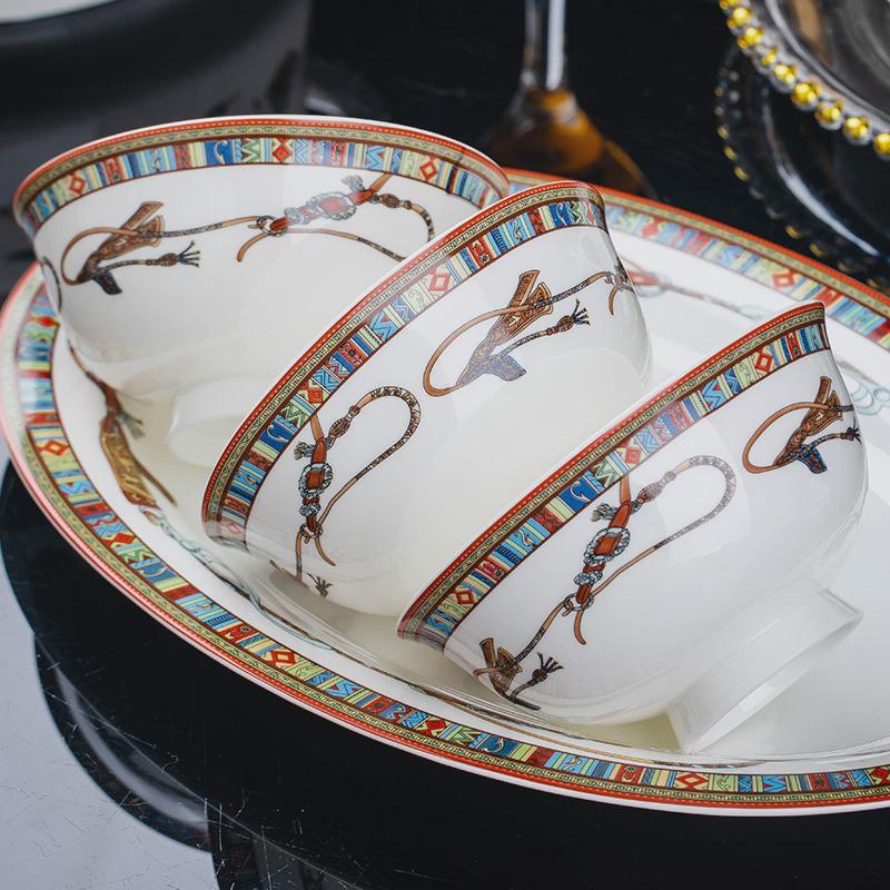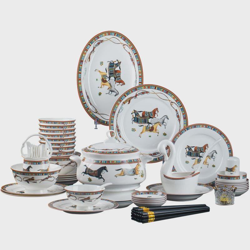 轻奢碗碟套装家用2024新款景德镇骨瓷餐具套装陶瓷碗盘筷乔迁盘子